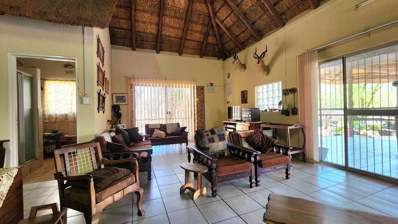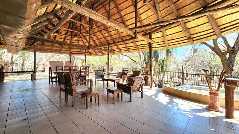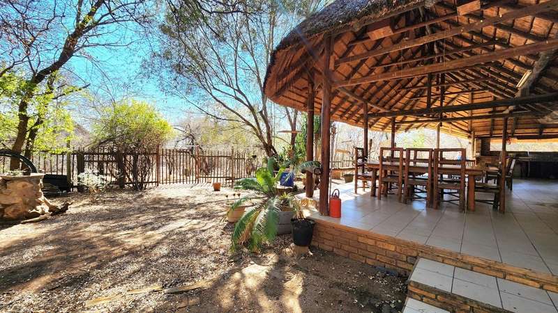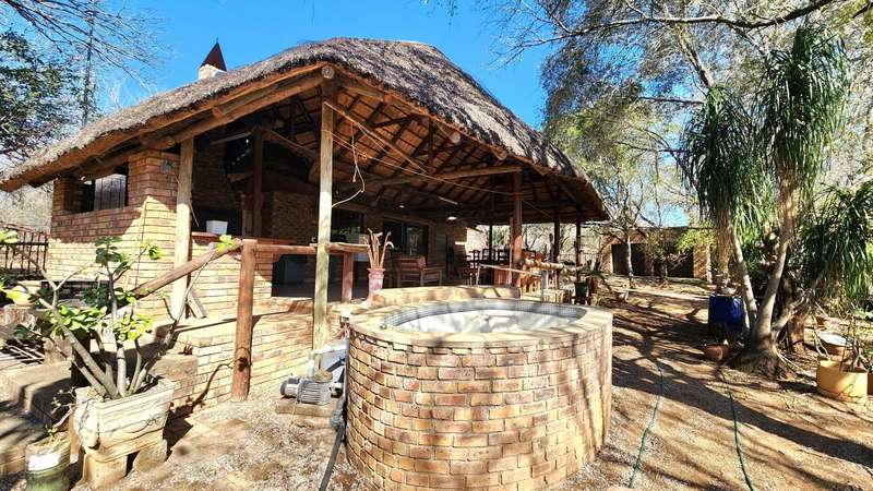 Spacious home on a large stand in Marloth Park Exclusively to Chas Everitt Marloth Park, Set on a generous 2,700m?? stand, this 148m?? thatch home offers a fantastic opportunity to create your ideal bushveld retreat. The property features an open-plan kitchen, dining and lounge area, a guest bathroom, one bedroom with en-suite bathroom, a second bedroom, and a loft area that can be used for additional sleeping space. A highlight is the expansive 76m?? patio with built-in braai, leading directly to the pool area. While the pool is not currently in working order, it provides excellent potential once restored. Additional features include a double garage, carport, 5,000-litre JoJo tank, and plenty of outdoor space to enjoy the natural surroundings. With solid structure and good proportions, this home is the perfect canvas for someone looking to modernize and add their personal touch in the heart of Marloth Park. Please get in touch for more information or to schedule a private tour.