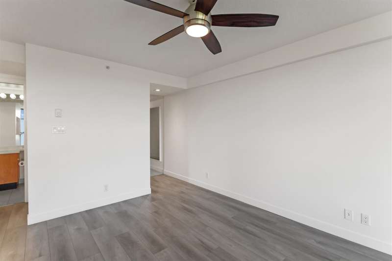 BOSA quality NE corner 2-bed, 2-bath in the desirable URBA building. This bright, impeccably kept home features modern wide-plank laminate floors, polished quartz counters in kitchen and baths, and fresh paint. Expansive corner windows flood the space with natural light and frame breathtaking North Shore mountain views. Ideally located in Collingwood—steps to Joyce SkyTrain, Central Park, Metrotown, and quick access to Hwy 1. Enjoy nearby green spaces, tennis courts, and playgrounds for family and pets. Building amenities include a gym and recreation room. One parking and one storage locker included.