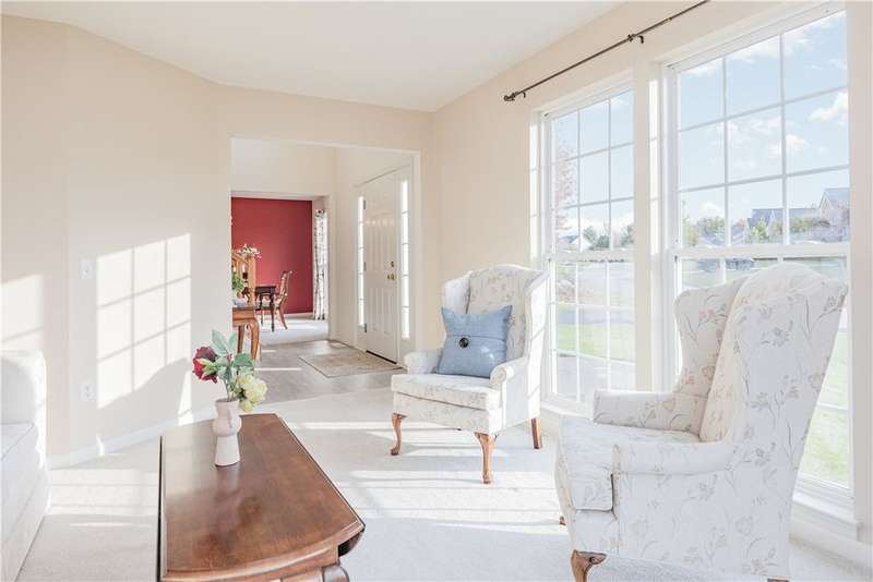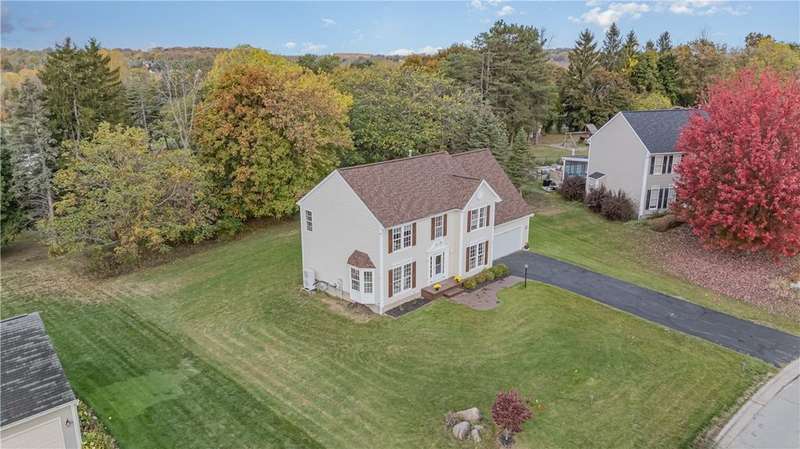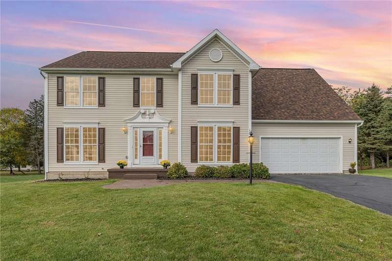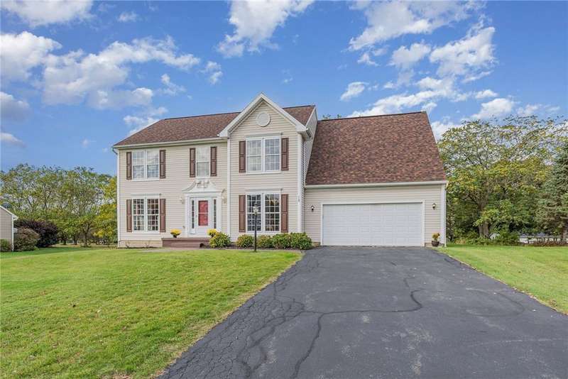 Welcome Home! This timeless Colonial-style residence is located in the highly desirable Devonshire Hills neighborhood, which adjoins the scenic Crescent Trail footpath and benefits from low-cost Fairport Electric. Set on a private lot, the home offers a peaceful setting with a beautifully maintained interior that is pet-free/smoke free home that has been thoughtfully updated throughout. Inside, you'll find an open and spacious layout featuring a cheerful morning room, an oversized garage, and a impressive owner's suite with two walk-in closets. Enjoy peace of mind with $60,000 + of recent updates : in 2022, a new hot water heater and sump pump were installed; in 2023, luxury vinyl plank flooring was added; in 2024, a new roof with a transferable 25 yr /50 yr warranty, along with a HVAC systems that is a high-efficiency gas furnace and electric heat pump, also with a transferable warranty. Most recently, in 2025, the kitchen was fully renovated with white cabinetry, quartz countertops, and stainless steel appliances, and the bathrooms were beautifully updated to match. Great schools. Delayed showings begin Thursday, October 23, 2025 at 5:00 PM. Delayed negotiations until Tuesday, October 28, 2025 at 12:00 PM.
