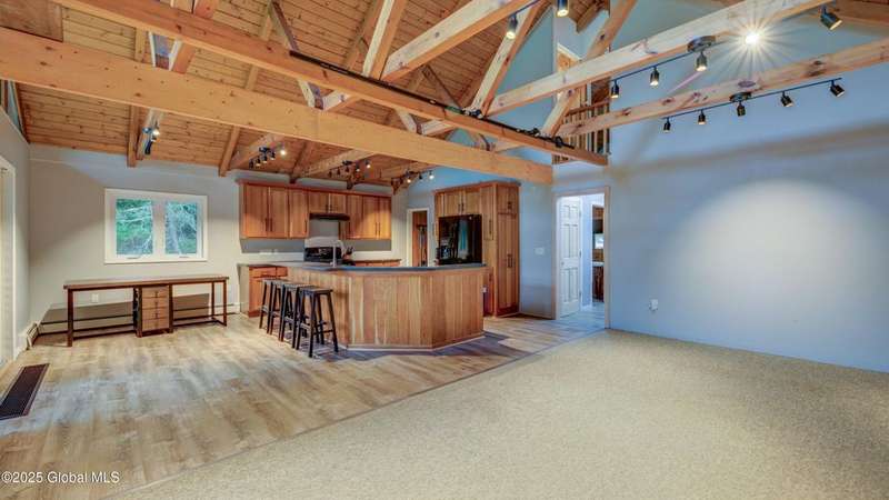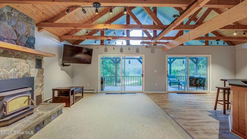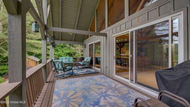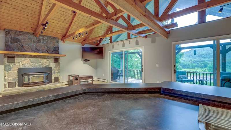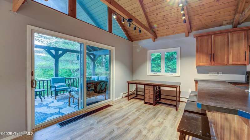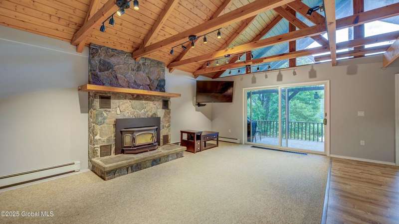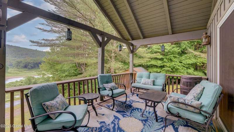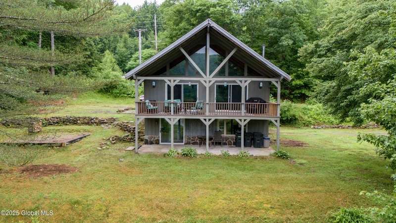 This inviting, woodland retreat offers 210' of waterfront on the Sacandaga River, 1.6 acres, Adirondack views, peace, privacy and potential. Close to Northville NYS Boat Launch on the Great Sacandaga Lake. This classic chalet pairs tasteful modern updates with opportunity to create additional living space in walk-out basement. Updated main level full bath. Open concept kitchen with large island, living room with wood stove and floor to ceiling windows with river views. This great room has direct access to spacious covered deck to enjoy the views and ADK wildlife. Two bedrooms on main level and third bedroom with half bath upstairs. Basement with kitchen and wood stove fireplace, also boasts potential for secondary suite, home office or entertainment zone. Book your private tour today!