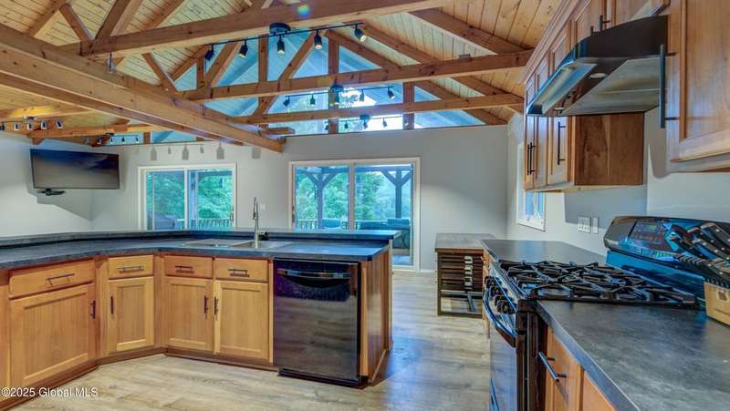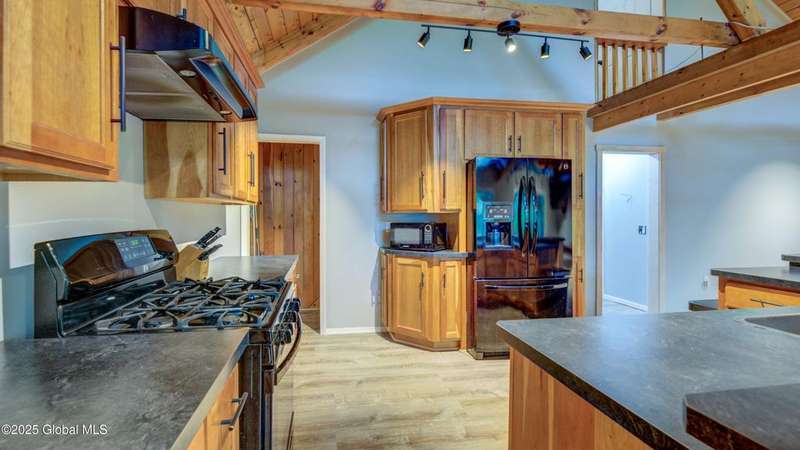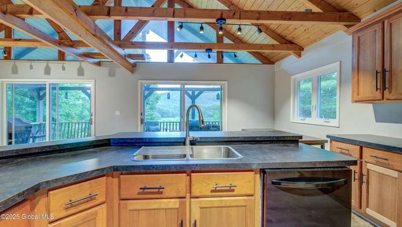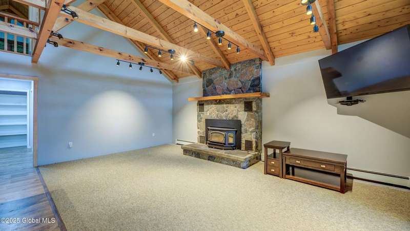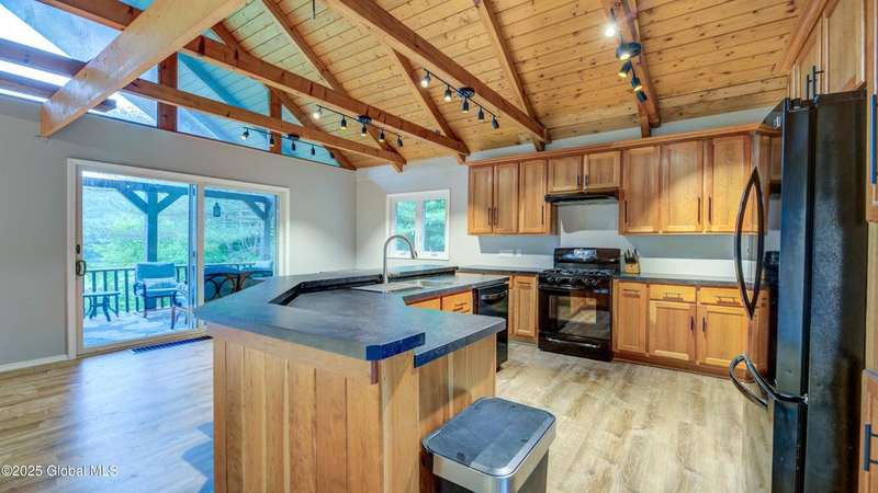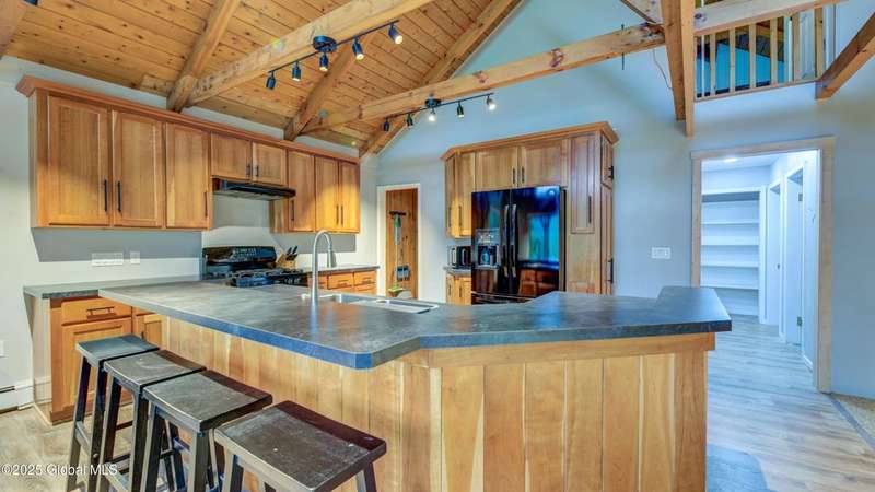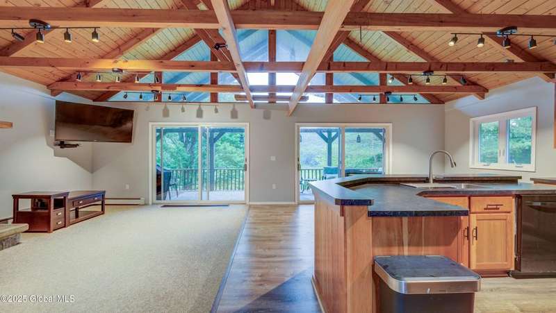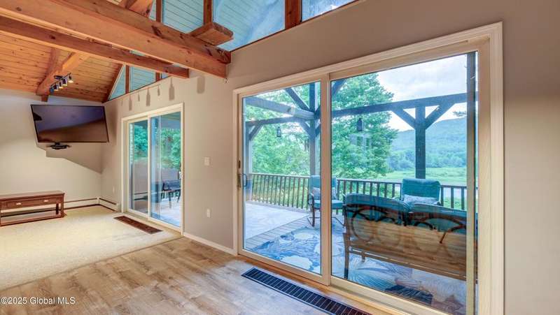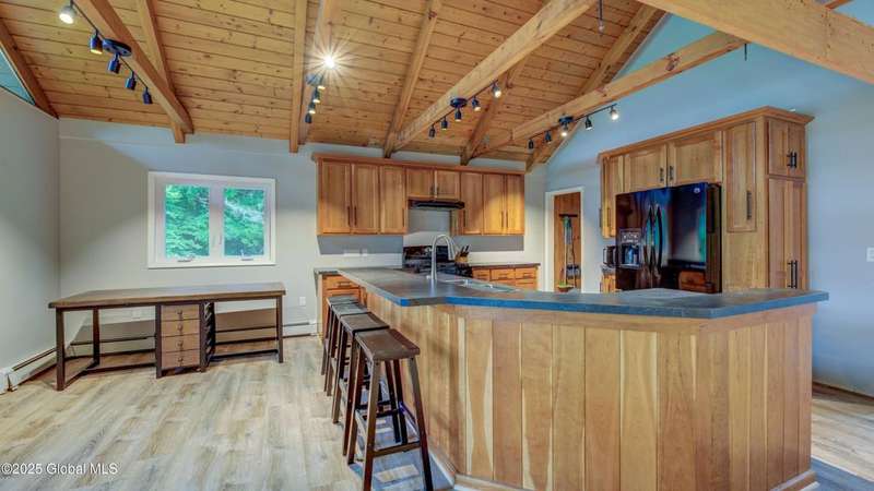 This inviting, woodland retreat offers 210' of waterfront on the Sacandaga River, 1.6 acres, Adirondack views, peace, privacy and potential. Close to Northville NYS Boat Launch on the Great Sacandaga Lake. This classic chalet pairs tasteful modern updates with opportunity to create additional living space in walk-out basement. Updated main level full bath. Open concept kitchen with large island, living room with wood stove and floor to ceiling windows with river views. This great room has direct access to spacious covered deck to enjoy the views and ADK wildlife. Two bedrooms on main level and third bedroom with half bath upstairs. Basement with kitchen and wood stove fireplace, also boasts potential for secondary suite, home office or entertainment zone. Book your private tour today!