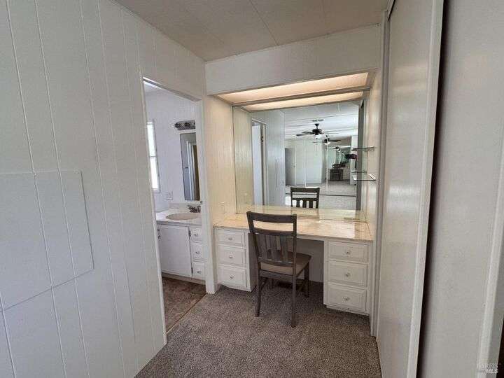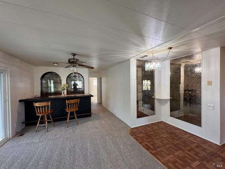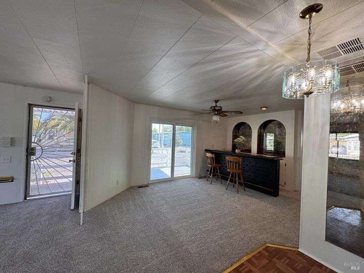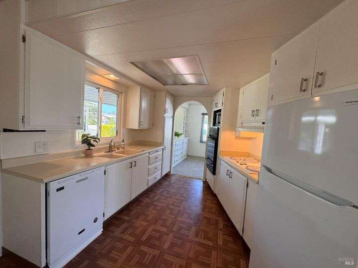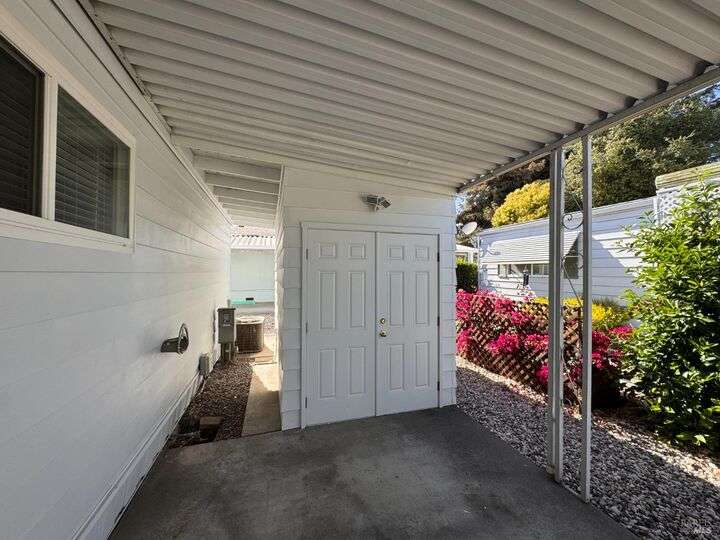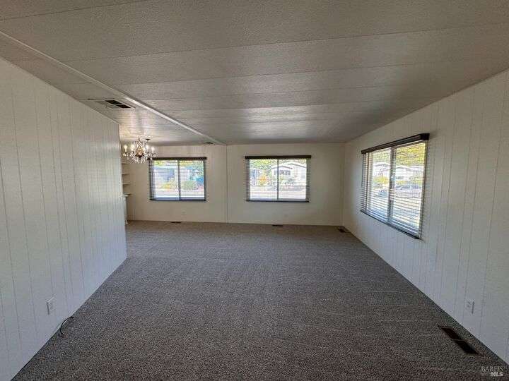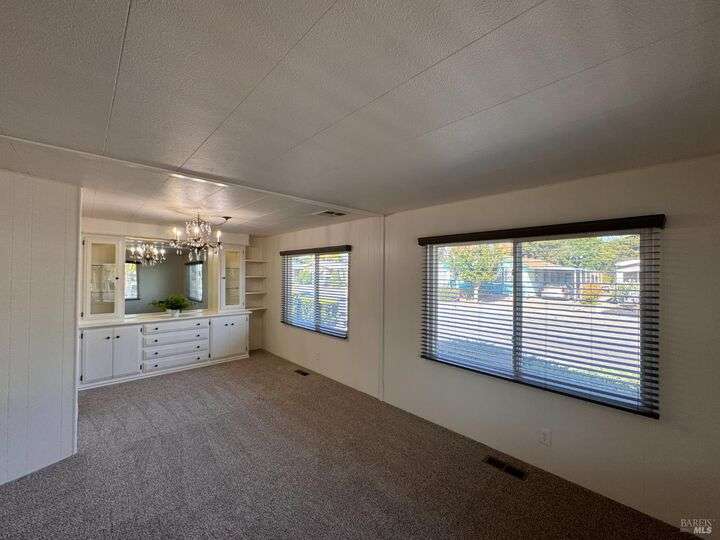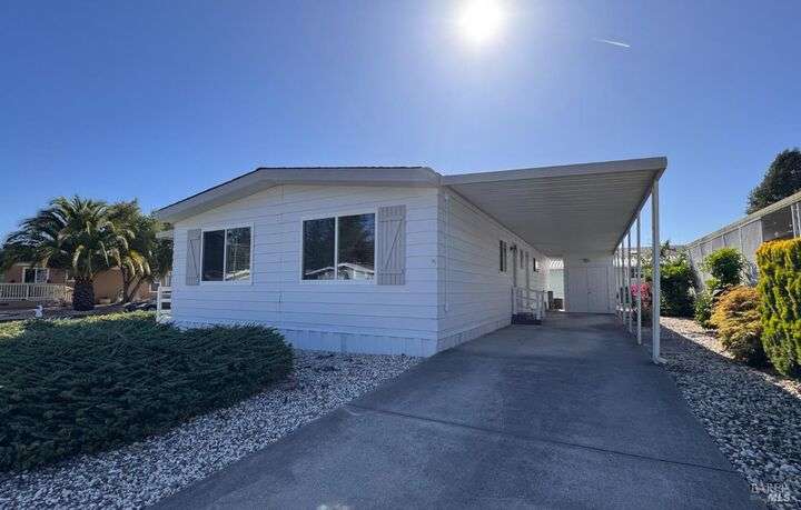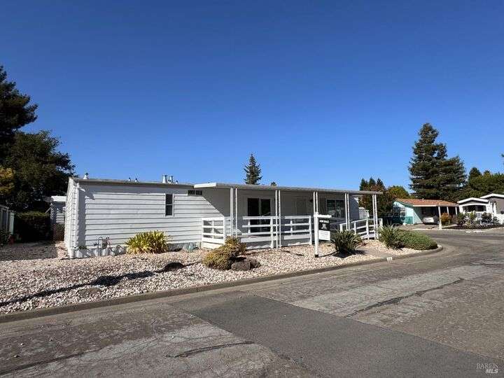 Charming 2-bed, 2-bath home located on a corner lot in Valle Vista Senior Subdivision. This home just had brand new carpets installed in the main living area and linoleum installed the bathrooms. Fresh exterior and interior paint, lighting fixtures, and a brand-new refrigerator. Come explore the large living room, wet bar, recently stained covered deck and custom built in storage room. Best of all Valle Vista has no space rent, you own the land, so you only pay $112 a month for HOA Dues, and you still get the amenities the great parks offer. 7.5 acres of landscaped walking trails, a pool to cool off in on the hot days, and a large clubhouse with activities. Excellent location in Santa Rosa, close to the freeways for heading out to the beach, Oliver's shopping center for groceries and a dog park just down the road. Do not miss your chance for exceptional living in this highly desirable senior community.