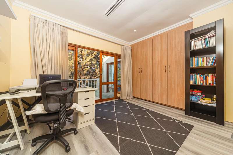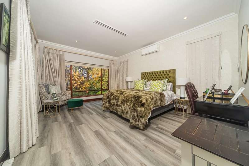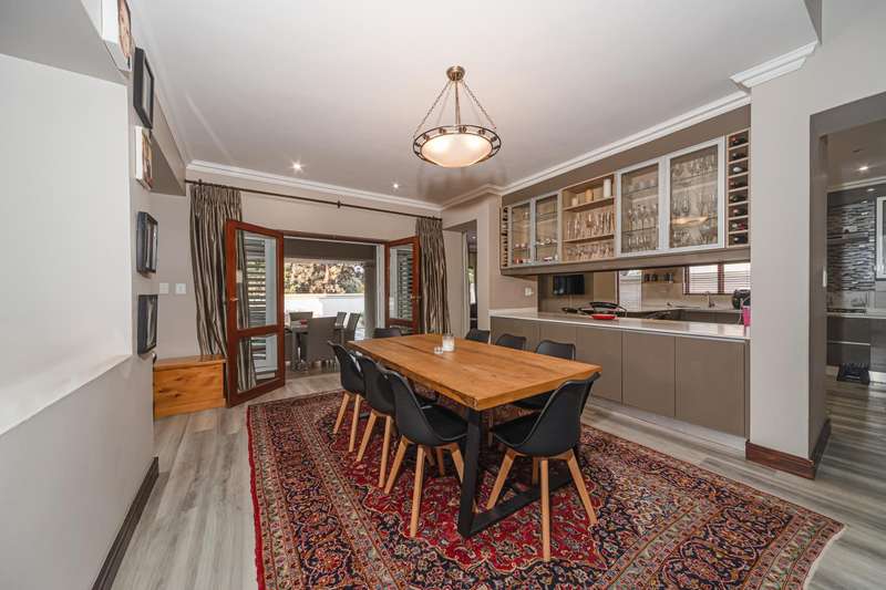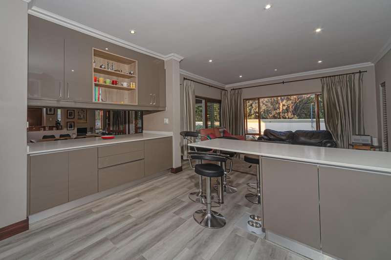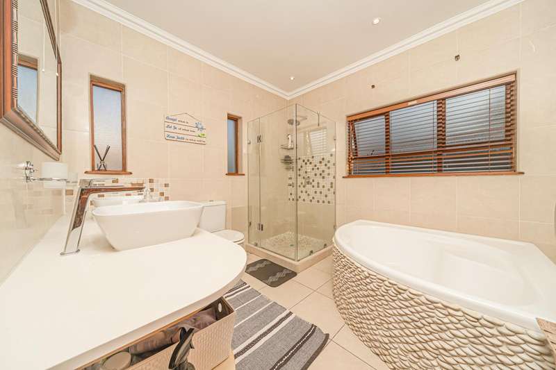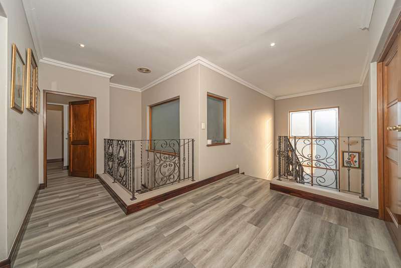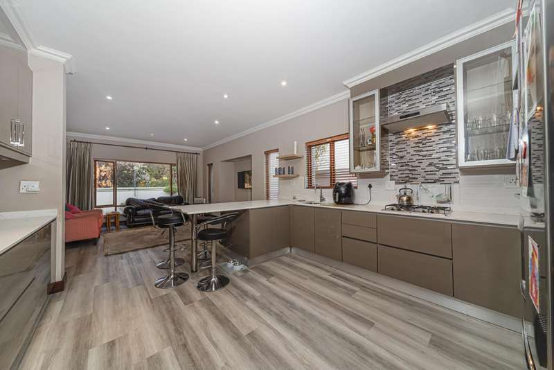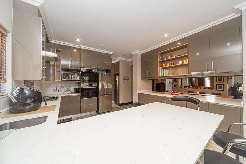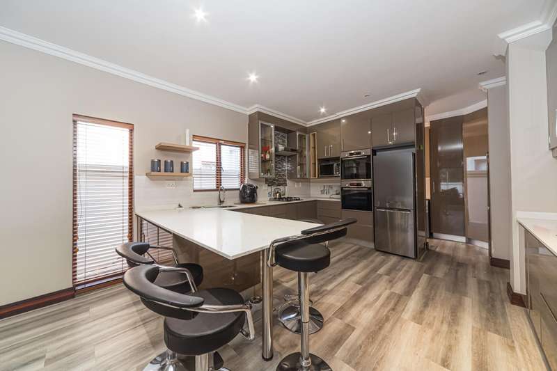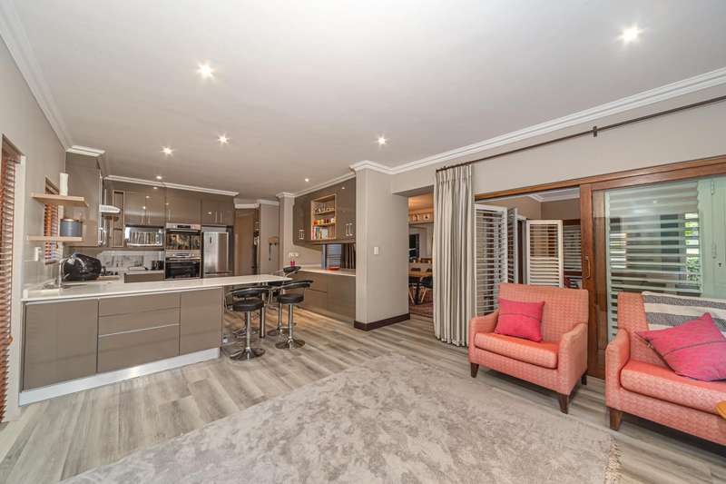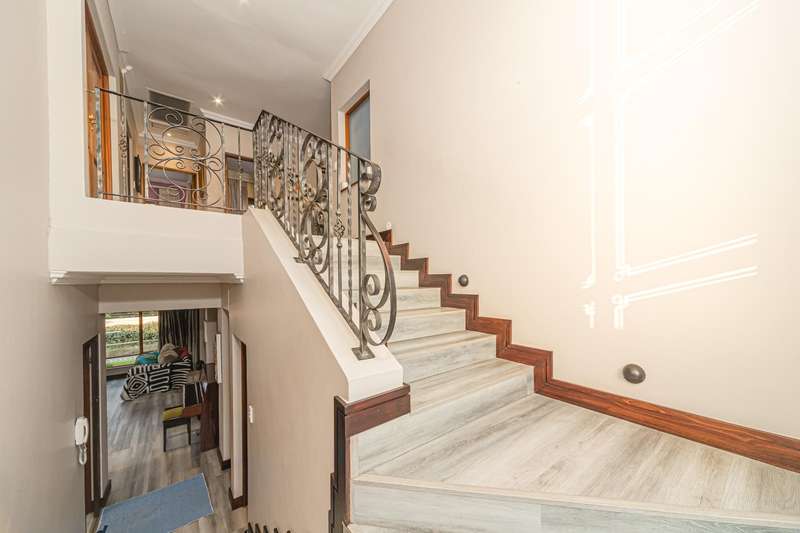 This beautifully upgraded double-storey home in a quiet, secure estate is the perfect blend of comfort, space, and modern convenience. Step inside to find vinyl flooring throughout, a modern kitchen with marble countertops, gas stove, dual ovens, and a full scullery/pantry setup. The home offers 3 spacious living areas, including a formal lounge with wood-burning fireplace, and opens onto a covered patio overlooking a solar-heated pool, lush garden, and water feature. Upstairs, the main bedroom is a private retreat with walk-in closet, aircon, and a large en-suite bathroom. Three additional bedrooms offer great space, storage, and shared balconies. Bathrooms have been recently renovated. Extras include: 5kVA inverter system and prepaid electricity Maids?ÇÖ quarters with kitchenette & full bathroom Double garage with built-in cupboards + carport Alarm system, electric fencing, and trellie doors Fibre-ready, pool pump/filter new, timed irrigation, and garden lighting Move-in ready and perfect for a growing family or those wanting space and security. ?ƒôì Levies: R2,100 | Rates: R2,381 Contact us today to view this incredible family home!
