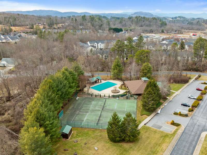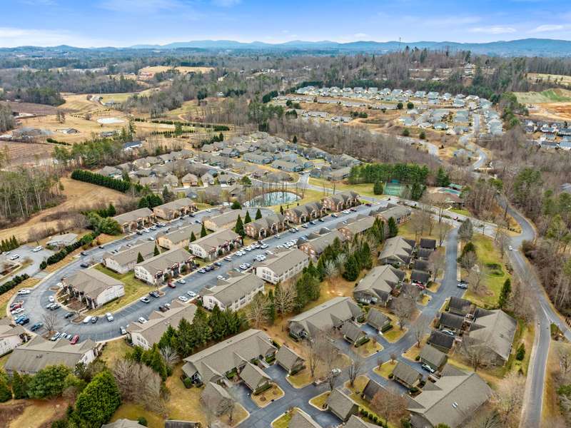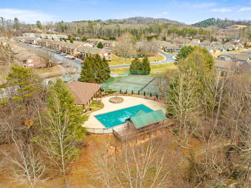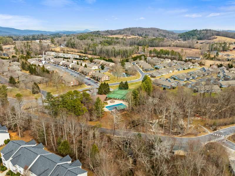 This well-maintained corner condo in gated Wolfpen offers updates like fresh exterior paint, new roof, porch, stairway, tankless water heater, and water-efficient toilets. Enjoy natural light, a cozy gas fireplace, and a den perfect for an office, reading nook, or additional guest room. The primary suite features ample closet space and an en-suite bath. Resort-style amenities include clubhouse, fitness center, pool, tennis/pickleball courts, trails, putting green, and grills. HOA covers exterior maintenance, landscaping, and more. Minutes to shopping, dining, I-26, Hendersonville, and Asheville. Nearby waterfalls, apple orchards, outdoor adventures, breweries, wineries with live music, and the iconic Biltmore Estate. Furnishings are negotiable. Not ready to buy? Seller would consider renting. Please call with any questions. Schedule your showing today and experience all Wolfpen has to offer!