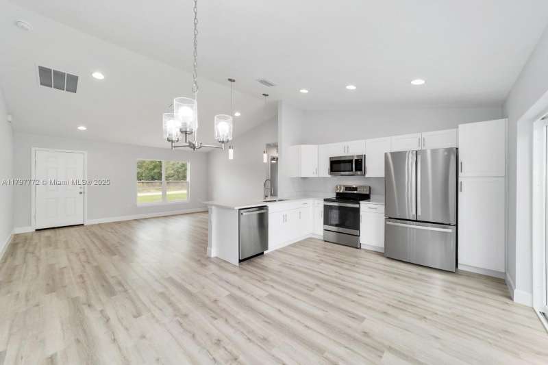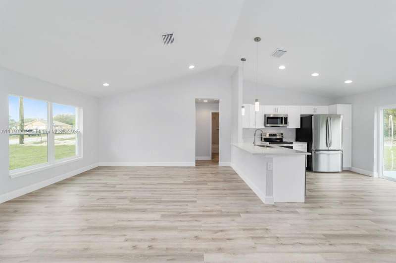 100% FINANCING AVAILABLE. ALL CLOSING COSTS PAID Stunning new home on a quiet, undeveloped road, blending modern elegance with family-friendly comfort. Perfect for first-time buyers, growing families, or anyone seeking a fantastic investment opportunity, this home features 8’ bedroom ceilings, soaring vaulted ceilings in living areas, and luxury water-resistant vinyl plank flooring throughout. The chef’s kitchen shines with soft-close wood cabinets, quartz countertops, a sleek peninsula with seeded LED pendant lighting, and premium stainless steel appliances, including a dishwasher. Relax in style with recessed lighting and ceiling fans in every bedroom. Photos showcase a similar model; colors and finishes may vary. Move-in ready for modern living at an unbeatable value!