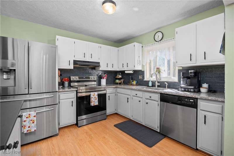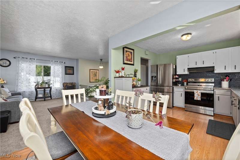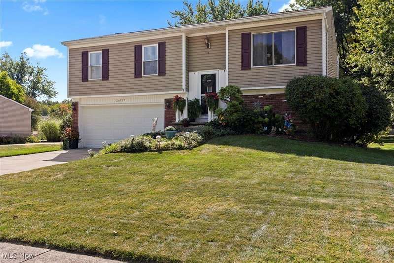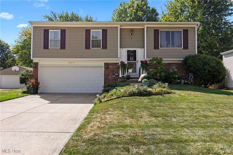Captivating curb appeal welcomes you to this meticulously maintained home in the sought after community of Olmsted Township! Lush landscaping leads you to the front door and makes you feel at home the moment you step inside. The main level features an open concept living, dining and kitchen area. The living room is filled with light from the large front window, and the super plush carpet will make you want to kick off your shoes and play with the kids on the floor. Enjoy family meals around the dining table with room for 6 or more. The kitchen features granite counter tops, super chic black ceramic subway tile backsplash and stainless appliances. Luxury vinyl wood plank floors run throughout the kitchen and dining area for easy clean up. Down the hall on the main level is an updated full bath with a Corian sink, marble surround tub and shower, and ceramic tile flooring. The primary bedroom can fit a king bed and has a full wall of closet space. The two additional bedrooms are roomy enough for a queen bed or make the perfect nursery. All three bedrooms have brand new carpet. Huge lower-level family room is the place to be for the big game or family gathering and features a beamed ceiling, brick walls and luxury vinyl wood planking. The laundry room includes the washer and dryer, sink, and storage cabinets. Don't miss the cute mud room area tucked under the stairs right off the garage for a great landing place for coats and shoes. The two-car garage is extra deep and wide for storage space and workshop areas. A French door off the family room in the lower level invites you onto the 12x10 paver patio that is perfect for relaxing, dining and grilling out. Spacious grassy backyard with plenty of room for games including the family Thanksgiving football game, gardening and more. This home is immaculate and just waiting for you to move in!