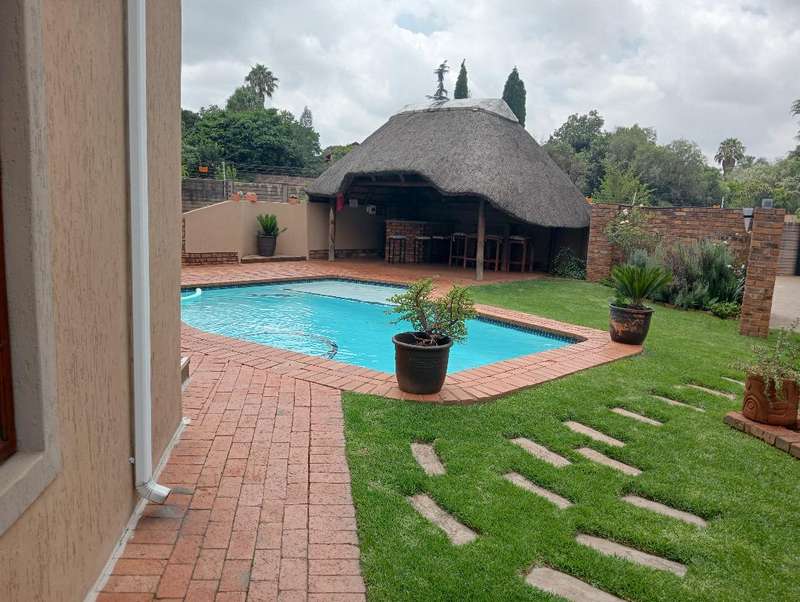 This absolutely stunning property with the perfect location in Zwartkop Ext 8 with a dual purpose. The one being a home that offers a living area ,separate dining area and a magnificent kitchen with a lovely gas stove. 2 Spacious bedrooms and 2 bathrooms of which one is en-suite to the master bedroom. A spacious study/office The living and dining area leads out onto a spacious covered patio overlooking the back manicured garden with braai facilities. The second purpose of this extremely neat property is a GUEST HOUSE that offers a spacious living area,a diningroom with a fitted kitchenette. 8 Bedrooms with either double or twin beds. Each bedroom with its own en-suite bathroom. These bedrooms are spacious and they all have a homely feel to them. Each bedroom is fitted with a television and open view decoder. For the guests there is a sparkling pool, lapa and braai facilities. Ample, safe parking for 12 vehicles are provided for. The main house can be incorporated which will then provide you with an additional 2 bedrooms/bathrooms etc. The property is zoned at Level 4. Fibre ready. Dolemite report available. Rezoning to level 4 Easy access to all amenities and highways. Give me a call to arrange your viewing.