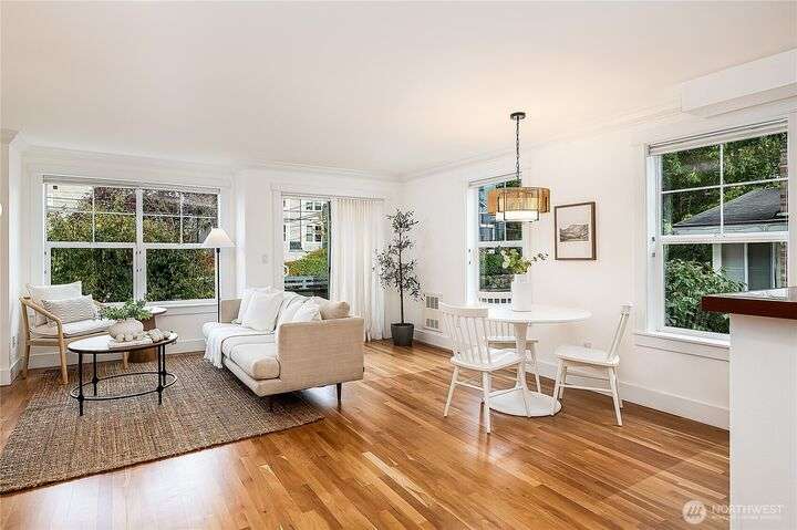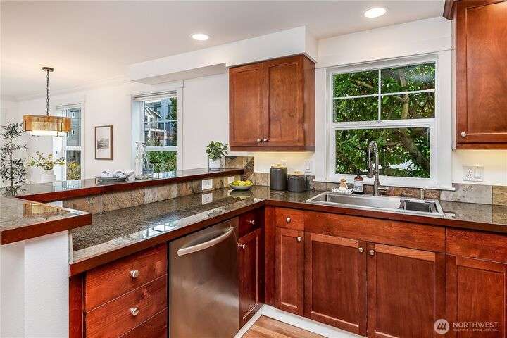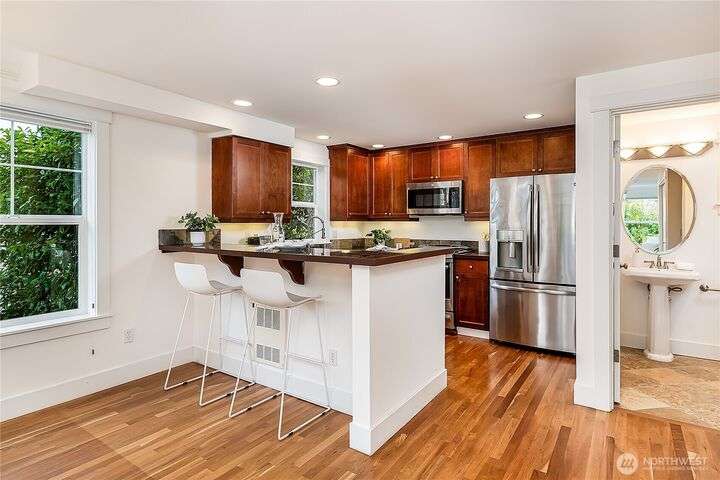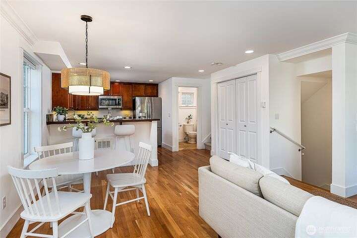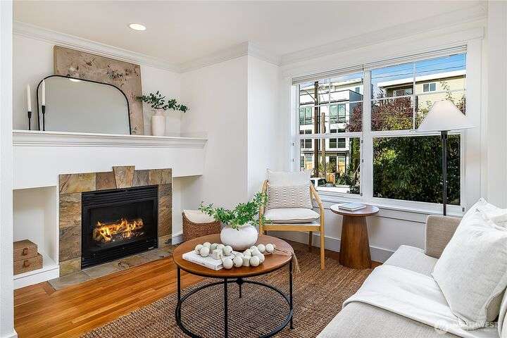 Experience modern Ballard living in this well maintained 3-bed townhome. With a walk score of 93, you’ll love the convenience of being close to dining, shopping, parks and the Ballard Locks - all tucked away on a quiet street. The bright, open-concept and wide layout features a welcoming living area with a cozy gas fireplace, kitchen with a breakfast bar and convenient 3/4 bath on the main floor. Step outside to a fully fenced patio and landscaped yard with plenty of room for pets. Fresh interior paint, an attached garage, and flexible floor plan offering one bed or office on the lower level and 2 ensuite bedrooms upstairs, this home is designed for comfort and versatility. Pre-inspected and move-in ready - stop renting and start owning!