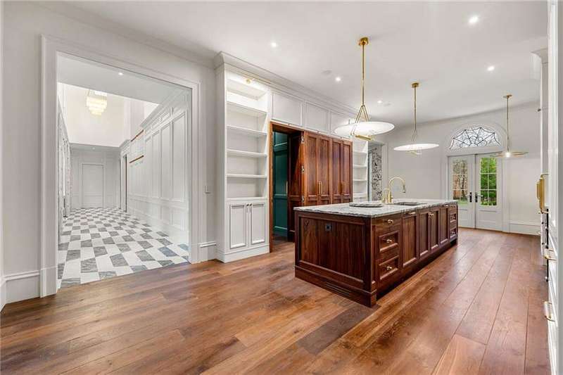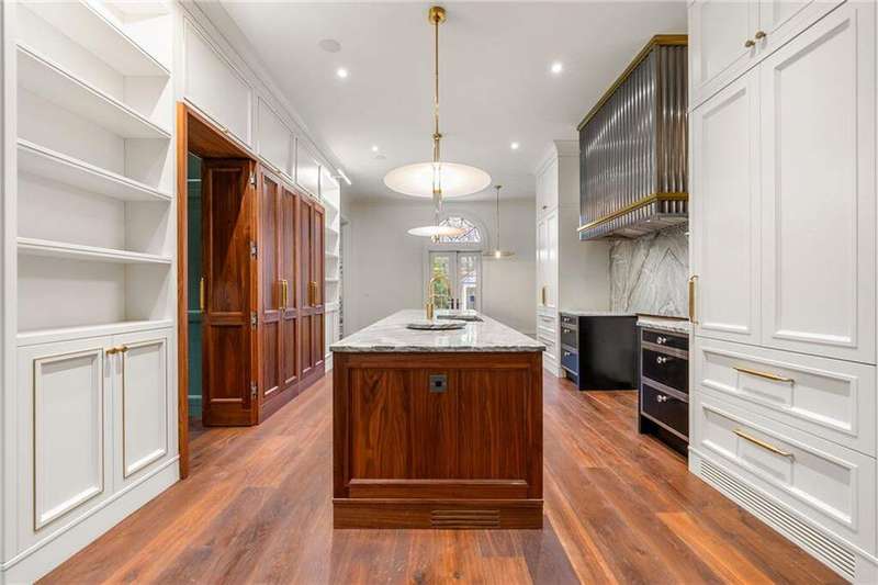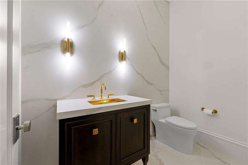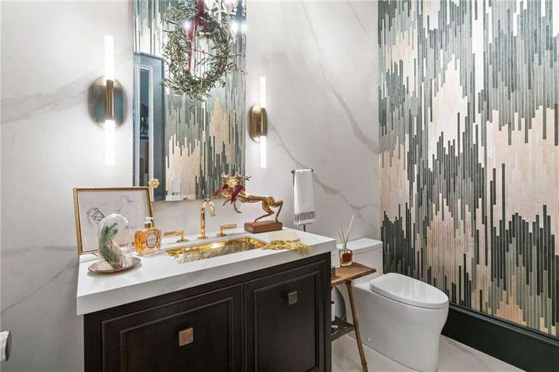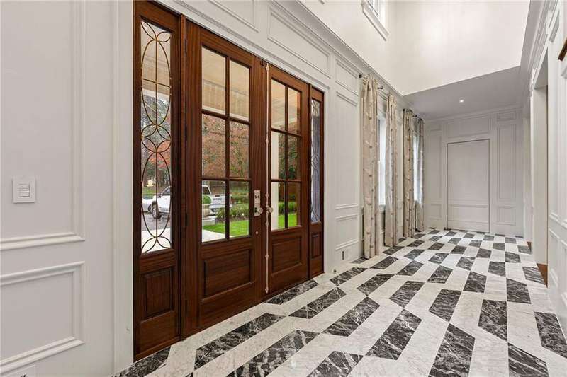 Atlanta Homes & Lifestyles "2024 Home for the Holidays Showhouse" Fronting both Tuxedo Road and Northside Drive, the former residence of legendary golfer Bobby Jones (and where the dream of Augusta National Golf Club and The Masters Tournament began) has been brought back better than ever by a Buckhead design dream team: Builder Firelight Homes and Tish Mills Interiors, in collaboration with architectural designer Kirk Design, and landscape architect Floralis Design. The Atlanta landmark, which sits on more than 1.5 acres, was a gift from the City of Atlanta after Jones earned a "Grand Slam" in 1930. Most recently, it was the incredibly successful Atlanta Homes & Lifestyles designer Holiday Showhouse - the talk of the town for its incredible renovation, interior selections, masterful stone and tile work throughout, and one-of-a-kind features and first-to-be-installed-in-the-world appliances (latest Wolf range), fixtures (the only Hydro Systems tub cast this year), and design elements (imported French mantels). A sweeping driveway (with pavers from the original home creating an artful pattern) and mature trees lead to a graceful motor court with a new three-car garage. A new front door facing Tuxedo Road serves as the main entrance. The original front door has been restored and positioned as a back door facing Northside Drive and the service entrance, leading to the pool and gardens. The classic Colonial home, now measuring 7,500 square feet thanks to an expansive new addition and modernized amenities, feels connected to the 1930s, by revitalizing legendary rooms such as Jones' study and using exterior materials similar to its earlier years. The reimagined floor plan includes a two-story grand hall and new entertaining spaces, such as a family room with a fireplace and coffered ceiling, and a kitchen with an island and hidden scullery. The design-build team reshaped the flow while maintaining the symmetry of the living room, dining room, and historic paneled study. The speakeasy is the home's best example of Tish Mills' mastery of complementing tradition and history with design-forward style, including lacquered walls and ceiling. In the study, the 100 year old red oak paneled walls were refurbished. Drone footage from Augusta National's hole #12 was used to make an exact miniature replica, viewable from the study. The primary suite is part of the new build on the main floor, and has the most fabulous en suite spa with steam shower and dry sauna. Your shower has four Calacatta Gold marble panels that seamlessly connect in a way that's never been done, with all veining perfectly matching, and a by-hand routing pattern that took 150 man hours to create. The result is a visually arresting piece of art. The cantilevered "conservatory tub" is enclosed in privacy glass, which transforms from clear to opaque with a tap of a button. The tub itself is the first of its kind to be installed, anywhere in the world. The terrace level is also new, with billiards room outfitted with refrigerator, wine cooler and microwave, wine cellar, golf simulator, and gym. Outside, enjoy the saltwater pool and spa, pool house with outdoor kitchen and full bath, and flat, walk out lawn.