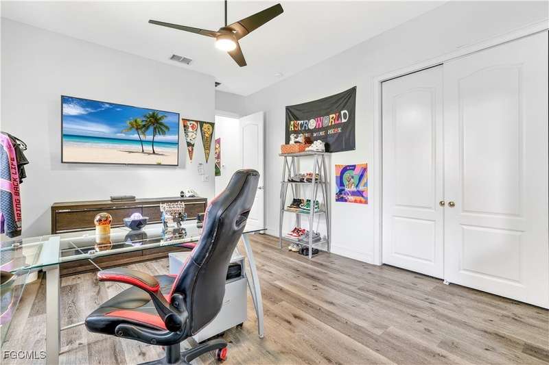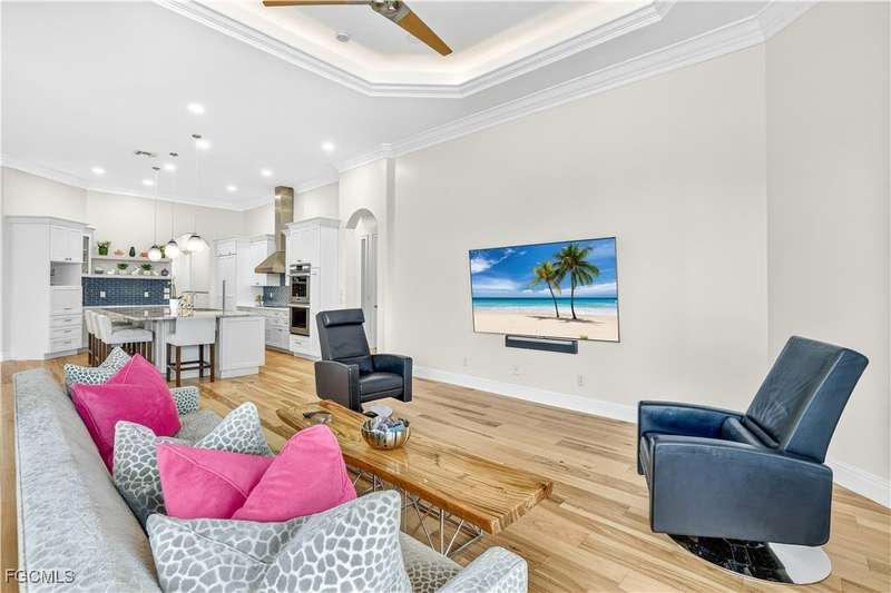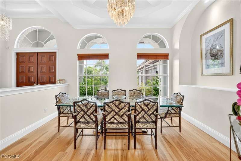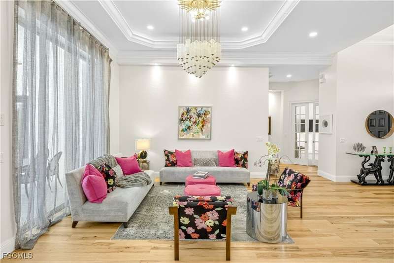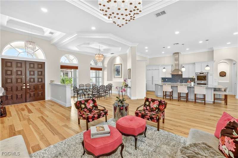 Discover luxury living in one of Fort Myers' most sought-after gated communities, Devonwood Estates. Situated on a meticulously landscaped 1.15 corner acre high and dry lot surrounded by 32 royal palms, this 4-bedroom, 4-bath estate has been thoughtfully renovated with high-end finishes and features throughout. A full interior remodel was completed in 2021, including the kitchen, all living areas, and bedrooms. The gourmet kitchen showcases custom cabinetry, a large Macaubas Fantasy Granite island, and top-tier Viking and Signature appliances. Additional updates include two new AC units and ductwork (2021), new roof (2024), remodeled pool, deck, and fencing (2022), and new pool equipment with a Jandy WiFi remote. Enjoy the elegance of ornate vintage chandeliers sourced from Palm Beach and Port Royal estates, soaring ceilings, rich wood flooring, and a seamless indoor-outdoor flow. The oversized lot offers privacy with preserve views, perfect for entertaining or relaxing in the custom pool and spa. Devonwood offers residents tennis, a community boat ramp with Gulf access, and serene privacy all while being just minutes from beaches, shopping, dining, and RSW Airport. This is one of the best kept secrets in all of SWFL.