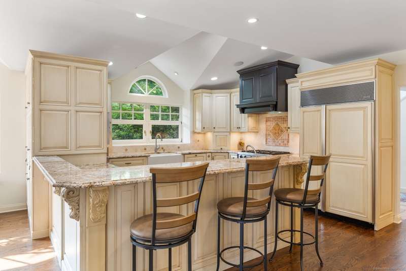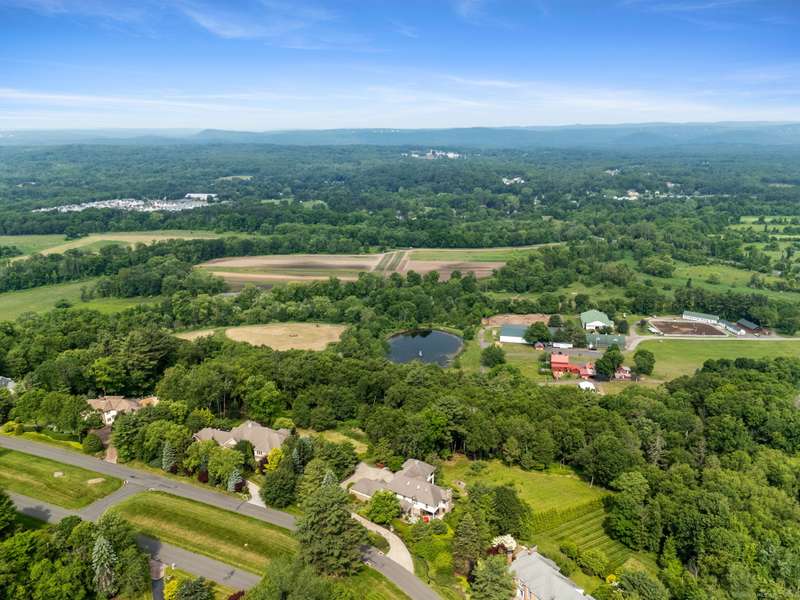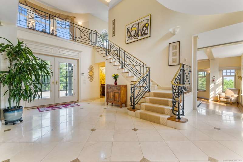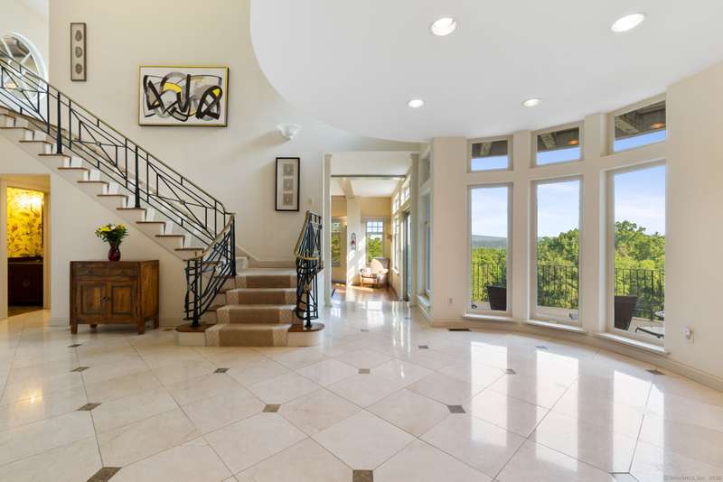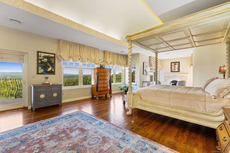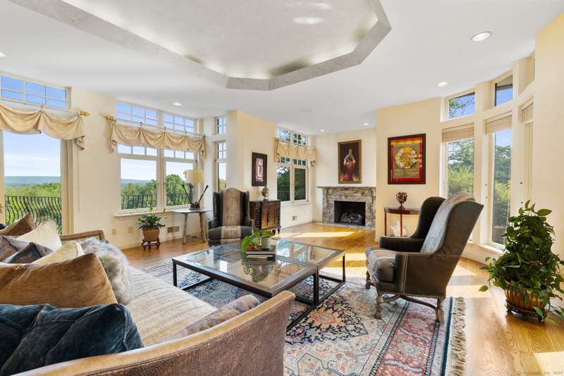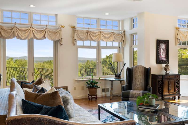 Welcome to 9 Cobtail Way, a magnificent custom-built French Country estate in one of Simsbury's most desirable neighborhoods. This elegant home combines timeless European charm with modern luxury, all set against the stunning backdrop of the Farmington Valley and Berkshire foothills. Set on an elevated, private lot, this residence offers sweeping panoramic views that shift with the seasons-sunsets over the valley, vibrant fall foliage, and tranquil winter scenes. Crafted with meticulous attention to detail, the home showcases classic French Country features including arched doorways, custom millwork, a stone facade, and soaring ceilings. Inside, you'll discover a gracious floor plan ideal for entertaining and everyday living. The gourmet kitchen, with high-end appliances and custom cabinetry, flows seamlessly into the sunlit family room and formal dining areas. The kitchen provides direct access to a private patio. All other main living spaces, including the primary bedroom suite, enjo