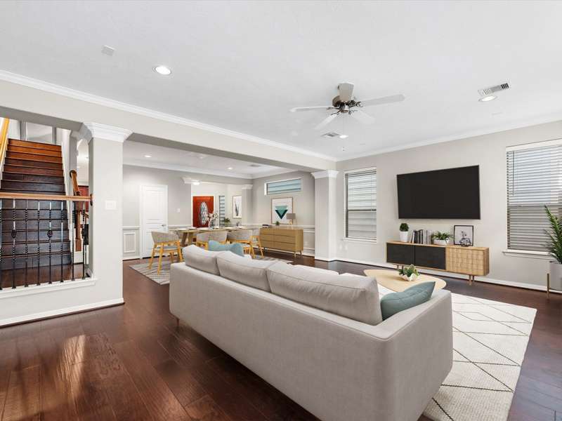 First floor living in Houston Heights with a small backyard! Parking is no problem with a private double-wide driveway and two car garage. Downstairs features a full-size living room, dining, and breakfast/kitchen. Gorgeous hardwood floors, fireplace, big pantry, kitchen island with breakfast bar, and half bathroom are a few of the downstairs accoutrements. Three bedrooms upstairs plus game room. The huge primary suite features a bay window and sitting area, and the bathroom has dual countertops, an extra large shower, bathtub, and a Texas-size closet. Sizable utility room with built-in shelving. Split floor plan. A stone's throw from Miko's Hot Chicken, Heights Biergarten, Fluff Bake Bar, SPJST Bingo and so much more. Centrally located between I-10 and 610.