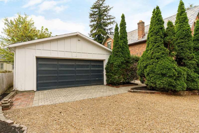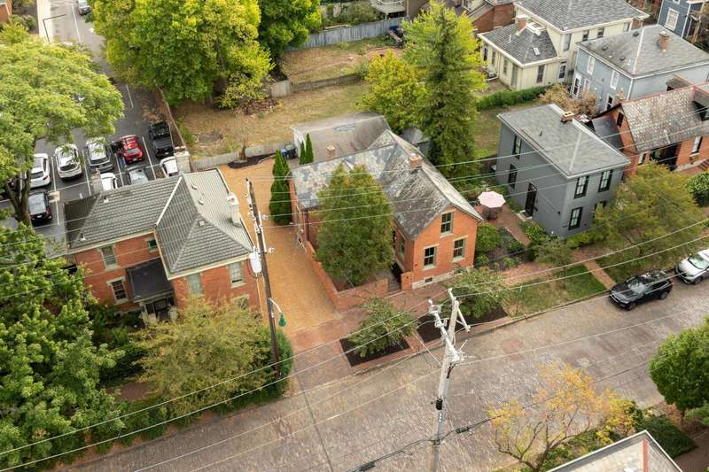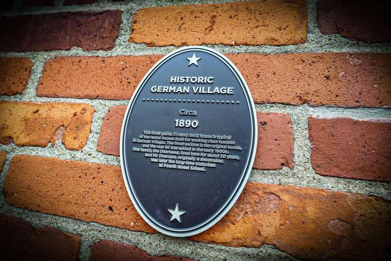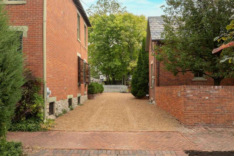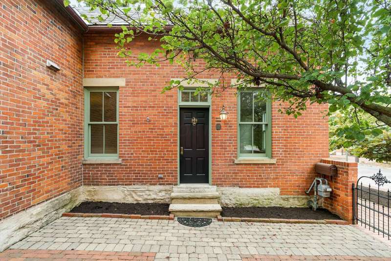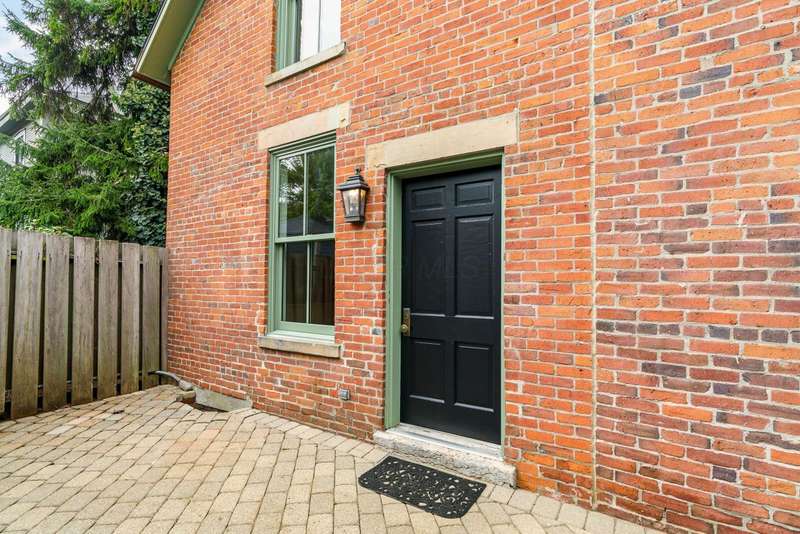 CLASSIC GERMAN VILLAGE BRICK Cape Cod beautifully updated with timeless character and modern comforts. The custom designed kitchen features 42'' cabinets, a Sub-Zero refrigerator, Viking gas range, granite counters, under-cabinet lighting, and a tile backsplash, opening to a spacious dining room and a lovely living room with built-ins and original wood floors. A convenient first-floor half bath adds functionality. Enjoy TWO OUTDOOR LIVING SPACES - a charming private courtyard entry perfect for entertaining and a bonus rear patio ideal for more intimate gatherings. Upstairs offers a large owner's bedroom with double closets, a generous second bedroom, a small loft area ideal for a home office, and a tiled full bath with a double vanity and heated floors. The OVERSIZED TWO-CAR GARAGE PROVIDES excellent storage and convenience. MAJOR UPDATES INCLUDE extensive roof work with hundreds of slates replaced, new copper gutters, downspouts, ridges, valleys, and flashing (2020-2024), ALL NEW WINDOWS INCLUDING the basement (2023), fresh interior paint (2025), repaired and repainted soffits, fascia, and dormer window woodwork (2023), NEW HOT WATER HEATER (2022), NEW SUMP PUMP WITH BATTERY BACKUP (2022), and masonry restoration including both front stone windowsills (2023). ADDITIONAL HIGHLIGHTS INCLUDE a new whole-house alarm system and German Village-approved plans, with all variances granted by City Council, for a carriage house addition featuring a covered awning and outdoor fireplace.
