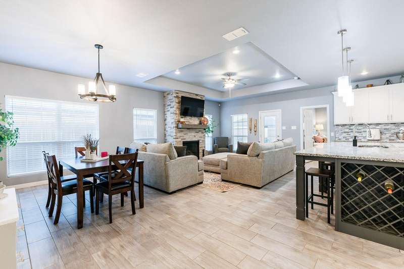 GORGEOUS home in Stonewood Estates with a HUGE price drop!! Plus, seller will contribute $7000 towards buyers closing costs! With one of the best floorplans around, this beautiful home will blow you away with all of the stylish amenities. Featuring an open layout & a flex room that makes a great 2nd living area, large office, playroom, or could be made into a 4th bedroom. You will fall in love with the well-appointed kitchen. With lots of workspace, granite counter tops, plenty of storage, large breakfast bar, gas range and pot filler, this kitchen offers everything you need! The kitchen is open to the living room with a striking stone fireplace and a roomy dining area. Ready to relax and be spoiled? Then head to the isolated primary suite. The primary bathroom is to die for! It features the most amazing, huge walk-in shower with multiple shower heads and 2 benches. Or you can opt for a soak in the relaxing tub. Next, check out the oversized primary closet. This primary suite is a true retreat! Outside you will find a nice covered patio and lush green grass yard, thanks to the automatic sprinkler system. With the size of this yard, there is plenty of room to add a pool or workshop. Located in the award-winning Lubbock-Cooper ISD and within the new Liberty High School attendance zone. New Roof coming soon! Come take a look for yourself and get ready to be impressed!