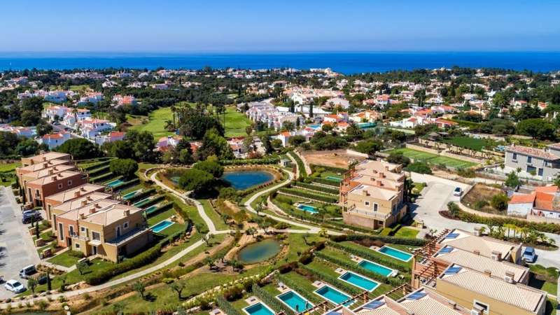 Luxury 2-bedroom villa, fully furnished, with swimming pool, garden and parking, in the Vale de Milho Village tourist development in Carvoeiro, Algarve. This 2-bedroom villa, located in the exclusive Vale de Milho Village tourist development in Carvoeiro, is for sale fully furnished and equipped. With a private pool, garden and parking, this property offers comfort, privacy and an excellent location. The villa is divided into three floors, carefully designed to provide functionality and elegance. On the main floor, we find a large and bright living room connected to an elegant dining room. From the living room there is direct access to the balcony, the private garden and the pool, perfect for moments of leisure and relaxation. The kitchen is fully equipped with modern appliances, and has plenty of storage space. Adjacent to the kitchen is a service bathroom. On the upper floor are the two spacious bedrooms, both en suite, with large windows and built-in closets. The bathrooms are modern, one with a bathtub and the other with a shower, ensuring comfort and versatility. The basement has extra storage space. Vale de Milho Village also offers an excellent infrastructure, with lush gardens and artificial lakes, controlled entry, privileging the security and privacy of residents. With an excellent location, in the Algarve fishing village of Carvoeiro, an area with growing demand and charm. The Carvoeiro area is known for its natural beauty, its wide range of outdoor activities and its proximity to the Vale de Milho golf course. The villa is just a few minutes from Carvoeiro beach and the town center, where are the restaurants, bars and stores. Faro International Airport is just 45 minutes away. This villa also represents a unique investment opportunity, allowing the property to be rented out through the rental program available at Vale de Milho Village (optional). CHARACTERISTICS:Area: 363 m2 | 3 903 sq ft Useful area: 110 m2 | 1 189 sq ft Bedrooms: 2 Bathrooms: 3 Energy efficiency: Certification in progress FEATURES: 2 bedrooms Equipped kitchen Balcony / Terrace Air conditioning Garden Swimming pool Private parking Tourist resort