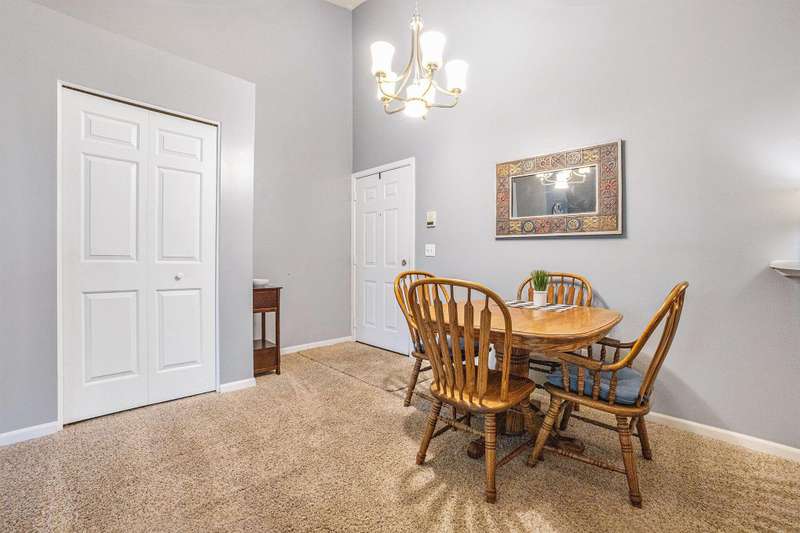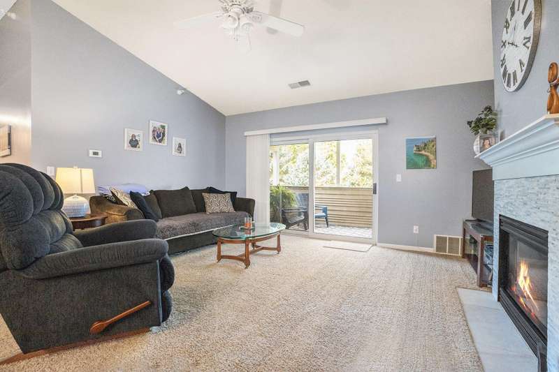 Rare 2 Bed, 2 Bath Top-Floor Condo in The Meadows at Jasonville Farms! Beautifully maintained unit featuring vaulted ceilings, a cozy fireplace with updated tile, and a rare second full bathroom. The kitchen boasts stainless steel appliances and a stylish backsplash. Spacious primary suite with private bath, plus a second bedroom and full guest bath. Enjoy the convenience of an assigned parking spot right outside the entrance and a detached 1-car garage. Community amenities include clubhouse, pool, and fitness center. Located in award-winning Caledonia Schools and close to shopping, restaurants, and highways. A must-see!