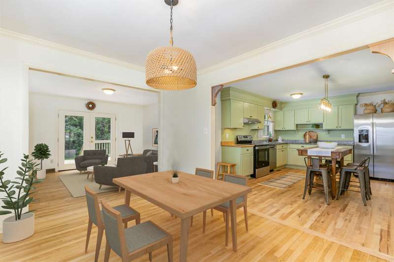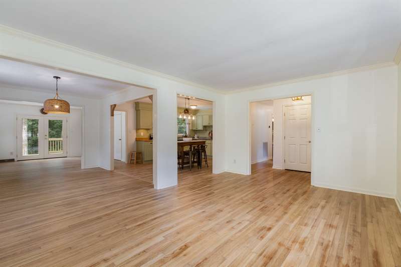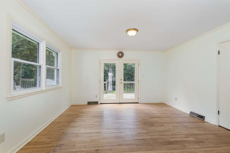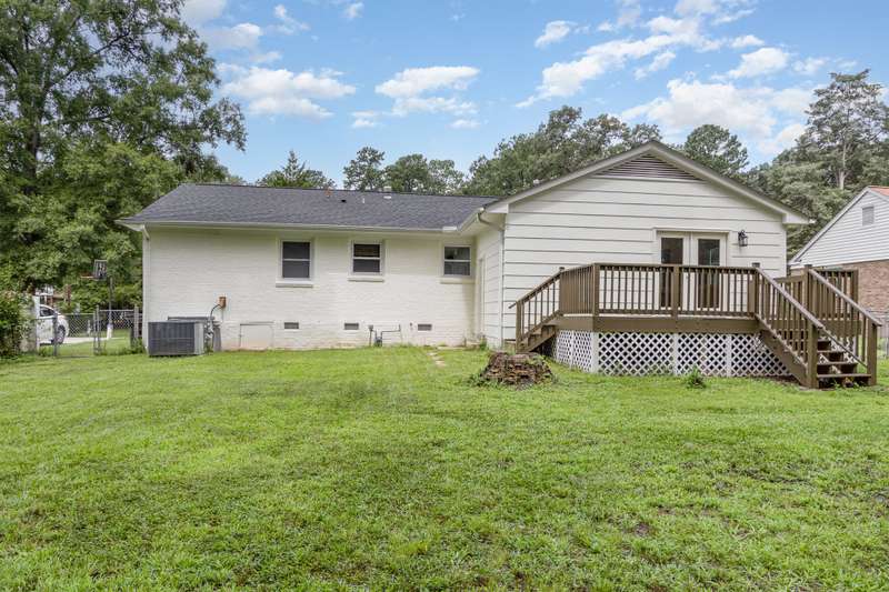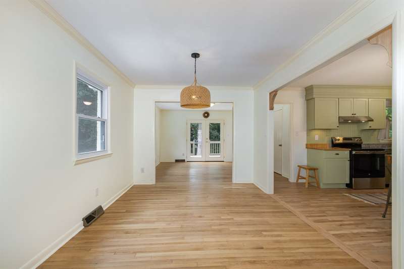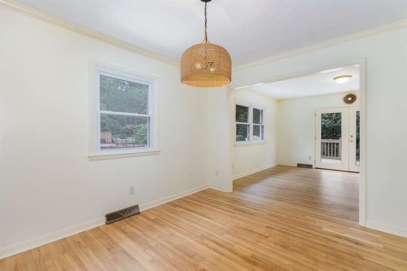 Welcome to this beautifully renovated brick ranch in the heart of South Durham's Parkwood neighborhood! This 3 bedroom, 2 full bath home seamlessly blends timeless charm with modern updates. Enjoy an open floor plan featuring a spacious living room, dedicated dining area, and a versatile den or playroom? all connected to the bright, updated kitchen and accented by newly refinished hardwood floors and new windows throughout! Step outside to a large deck overlooking a flat, tree-lined backyard?ideal for entertaining or relaxing. A convenient mudroom off the backyard is perfect for all your storage needs. The serene primary suite includes a fully updated en-suite bathroom with new tile, lighting, and vanity. Thoughtful renovations throughout the home bring it effortlessly into 2025 while maintaining a warm, peaceful vibe. Don't miss the chance to own this move-in-ready gem in a prime location near everything South Durham has to offer! MLS listing documents provide a more extensive list of the upgrades completed.