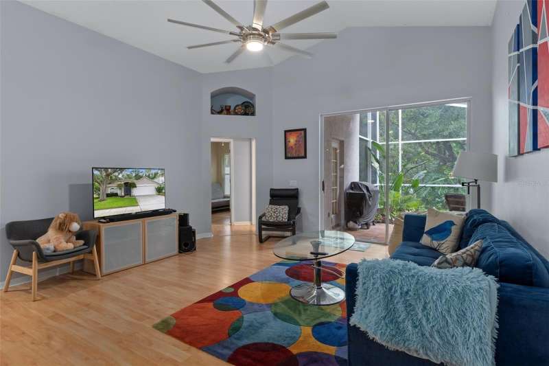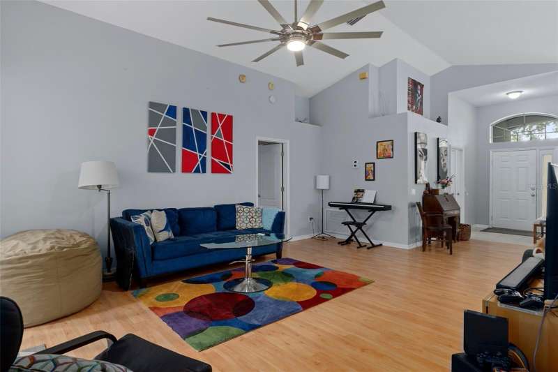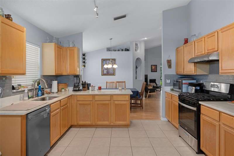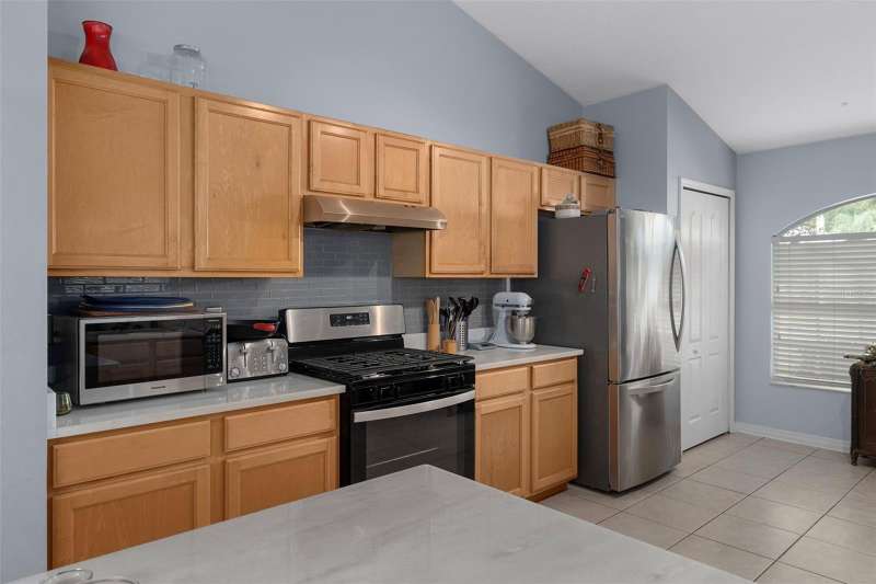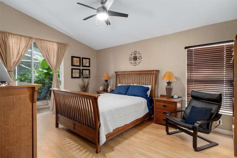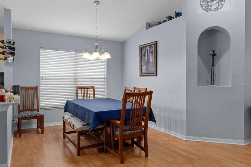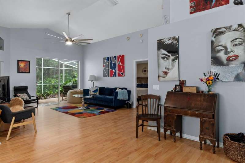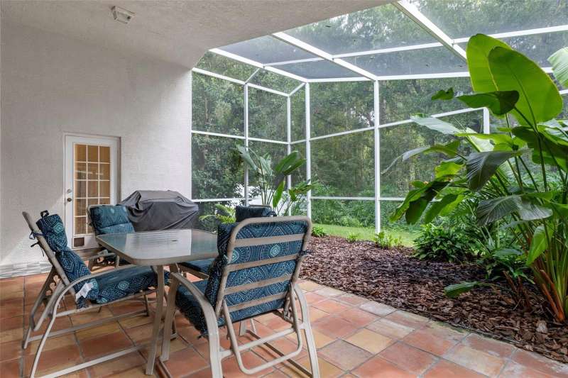 Under contract-accepting backup offers. Beautiful 3-Bedroom Home on Private Conservation Lot This stunning 3-bedroom, 2-bath, 2-car garage home is perfectly situated on a serene conservation lot with no rear neighbors, offering privacy and peaceful views of the wooded preserve. Step inside to an inviting open great room with vaulted ceilings, laminate flooring, and sliding glass doors that fill the space with natural light. The full-size dining room is ideal for entertaining, while the extra-large kitchen features granite countertops, stainless steel appliances, abundant cabinetry, and a cozy breakfast nook. The spacious master suite boasts a walk-in closet and private access to the screened lanai. The luxurious master bath offers dual granite vanities, an oversized garden tub, and a separate step-in shower. This desirable split-bedroom floor plan provides comfort and privacy, with the secondary bedrooms also featuring vaulted ceilings and laminate flooring. Relax outdoors on the covered, screened lanai and enjoy the tranquil setting that feels like country living while being minutes from everything you need. Located in the highly sought-after Meadow Pointe community, you’ll have access to parks, playgrounds, multiple swimming pools, tennis courts, and more. Conveniently close to excellent dining, entertainment, Wiregrass Mall, and Tampa Premium Outlets.
