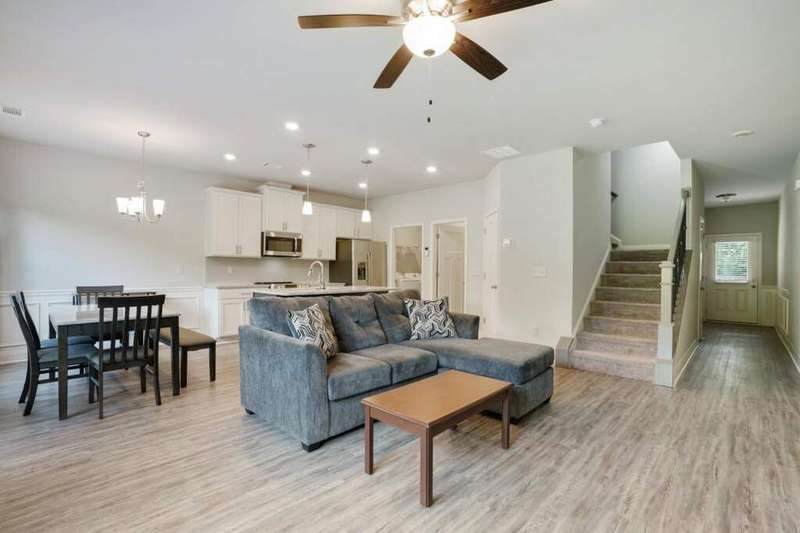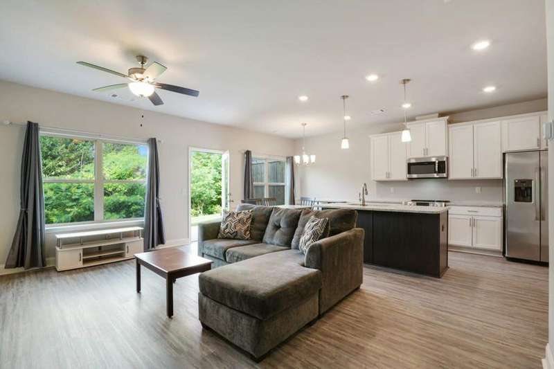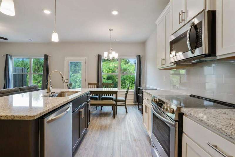 Welcome to this like new townhouse in the Sugarloaf community! Enter through a light filled foyer into an open concept floor plan with modern interior finishes. Living room opens to a private backyard with patio perfect for entertaining. The kitchen features antique white kitchen cabinets with shaker doors, kitchen island with pendant lighting, stainless steel appliance, granite countertops, and subway tile backsplash. LVP flooring on entire main level with chair rail & shadow box trim in foyer and dining room. Upstairs is a spacious master bedroom with tile floors, fully tiled shower, craftsman 3-panel interior doors and more. The two secondary bedrooms overlook the backyard and green space beyond the yard. A great place to call home.