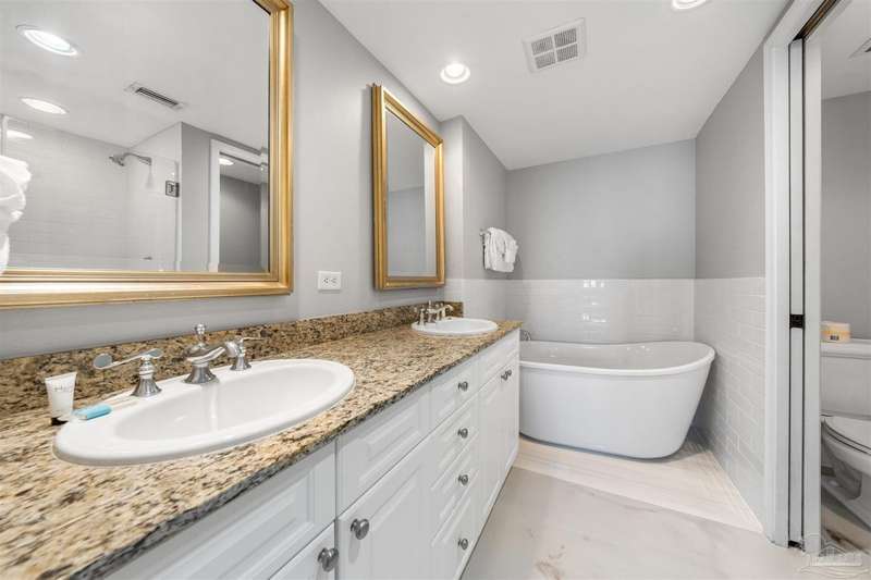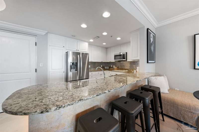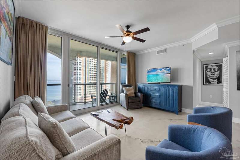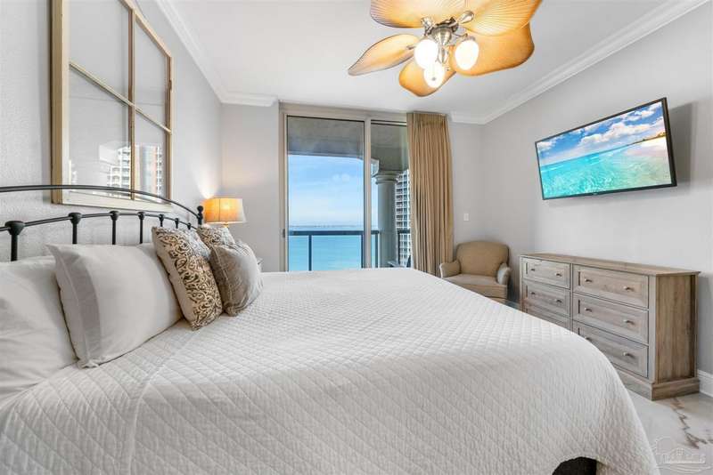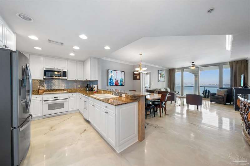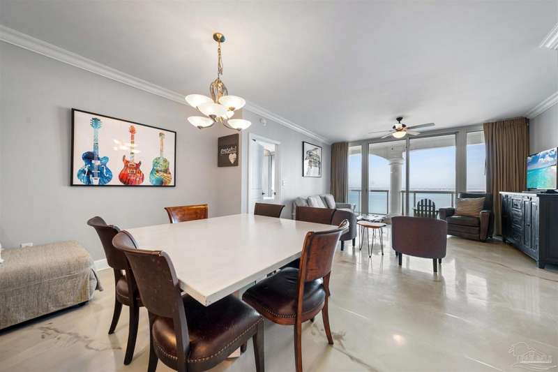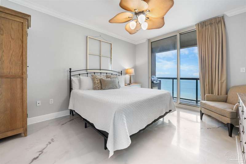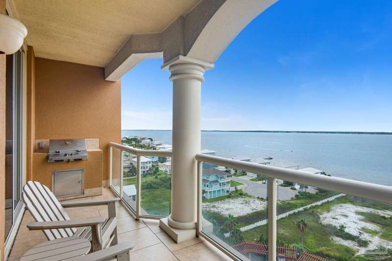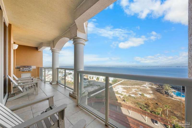 The epitome of luxury beach living awaits you at this Portofino residence. As you enter the 2-bedroom, 2 �½ bathroom property, you are greeted by an open floor plan with floor-to-ceiling windows that frame the breathtaking views of the Intercoastal Waterway. In the kitchen, enjoy the white cabinetry with ample storage space, granite countertops, subway tile backsplash. The dining and living areas flow effortlessly together, offering a perfect setting for entertaining guests or simply winding down from the day. Relax on your private balcony while relishing in the picture-perfect views, all while enjoying beautiful sunrises and sunsets and watching dolphins play in the waters below. The spacious primary bedroom features stunning views, a sliding-glass door leading you to the balcony, his-and-hers closets, and an owner's close. Enjoy dual vanities, a walk-in shower, jetted tub, and private water close in the en suite bathroom. The second bedroom provides direct access to the balcony as well, and an en suite bathroom with a tub/shower combination. The balcony also features a built-in electric grill, perfect for outdoor cookouts year-round. Enjoy a turn-key home, as this property is offered furnished and is a lovely primary residence, second home, or successful vacation rental. Portofino Features: A 21,000 sq ft. Lifestyle Center onsite includes a European spa, concierge services, fitness center, and restaurants. The amenities are endless: five rubico tennis courts, the Portofino Market, Starbucks cafe, smoothie bar, heated indoor Olympic swimming pool, and two infinity-edge outdoor pools overlooking the Intercoastal Waterway. Each Tower has its own private heated pool and hot tub. Portofino Resort & Residence is known for its sugar-white sandy beaches, emerald-green waters and the wonderful Intercoastal Waterway and Pensacola Beach lifestyle.