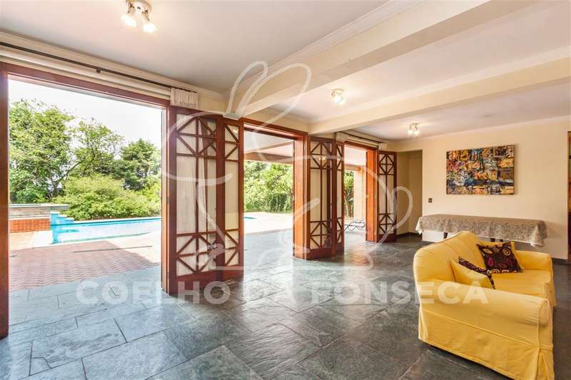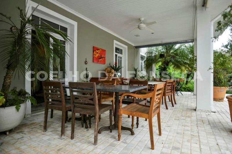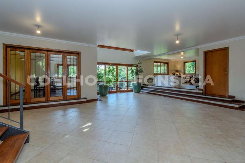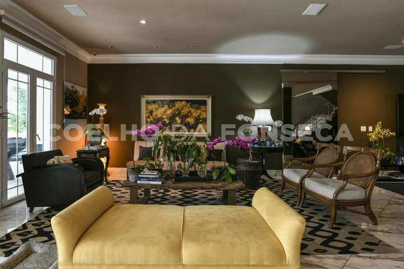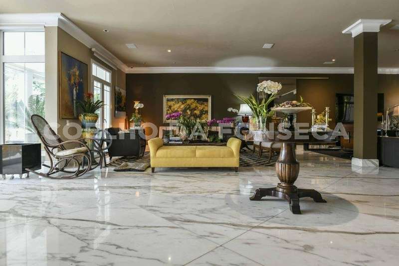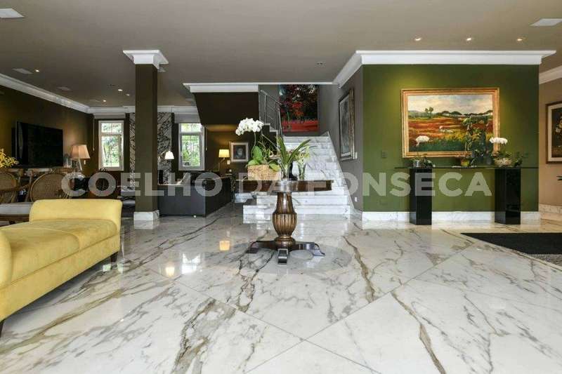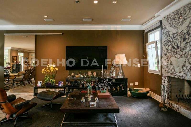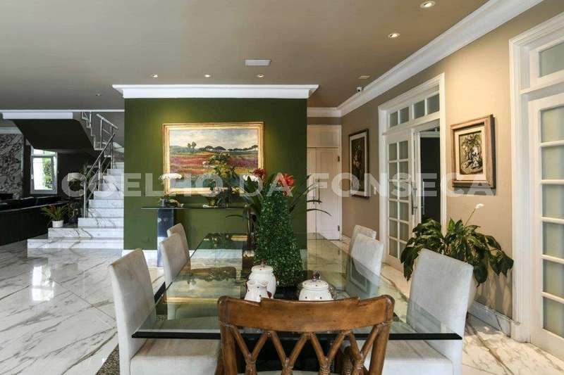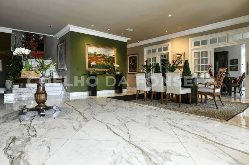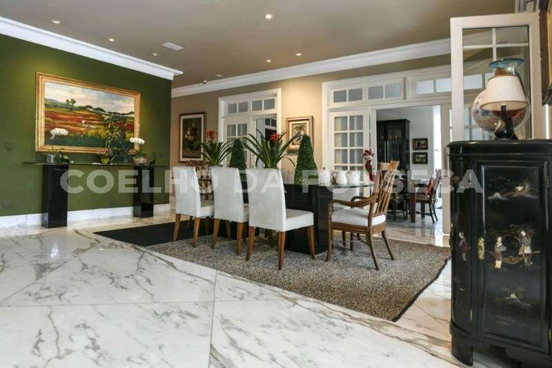 A área social tem espaços amplos e não compartimentados, com sala para 4 ambientes com lareira, piso em mármore italiano e com integração quando se quer, com a sala de refeições que é complementada com uma cozinha super equipada, para o seu momento de cozinhar de forma prática e aproveitar momentos de lazer com a família e amigos. Escritório com lareira e biblioteca.