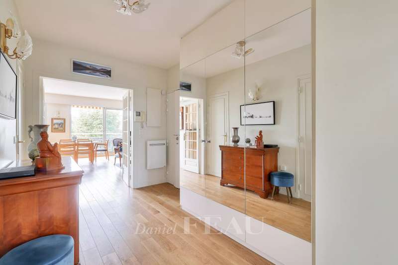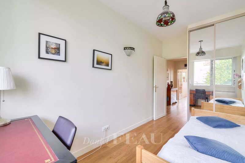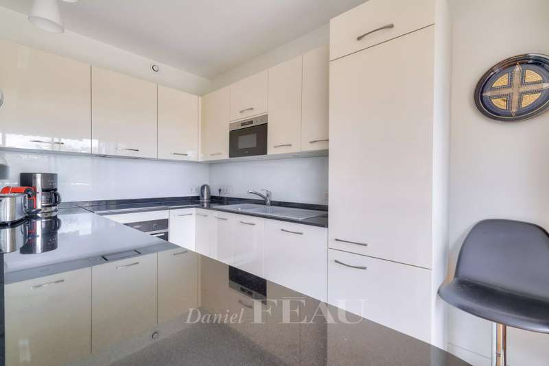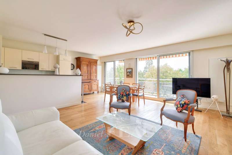 Daumesnil neighbourhood, on the edge of the Bois de Vincennes. This 77 sqm dual-aspect apartment on the 2nd floor of a luxurious relatively recent building with a lift is in perfect condition. Benefiting from a compact floor plan with no wasted space and opening onto wide balconies enjoying open views, it includes a bright south-facing living/reception room with an open-plan kitchen, two bedrooms, a shower room/wc and a guest wc. With a parking space and a cellar.
