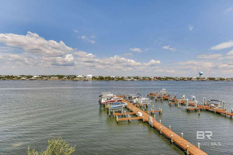 WELCOME TO THIS BOATER'S PARADISE AT DOCKS ON OLD RIVER #7B, OFFERING YOUR VERY OWN DESIGNATED, PREMIUM BOAT SLIP CONVENIENT TO YOUR CONDO! This delightful 2-bedroom, 2-bathroom residence serves as an ideal island getaway for you and your family or a wonderful rental property. Take advantage of amenities such as the outdoor pool, fish cleaning station, grill and picnic area, fire pit, additional parking for vehicles and trailers, and ample covered parking (first-come, first-served). The residence features an open-plan kitchen with a lovely view of the Gulf of Mexico as well as living area that opens to a spacious balcony with storage, providing breathtaking views of Ole River where boats pass by and dolphins play. The Primary Bedroom includes an ensuite bathroom and direct balcony access. Offered fully furnished, you can easily move right in and embrace the Perdido Life! With its prime location and boating facilities, you have convenient access to explore nearby islands, cruise through the Pass, or visit the renowned Flora Bama. Don't let this unique opportunity to own a piece of paradise slip away. Arrange your private tour today and start living your dream! Buyer to verify all information during due diligence.