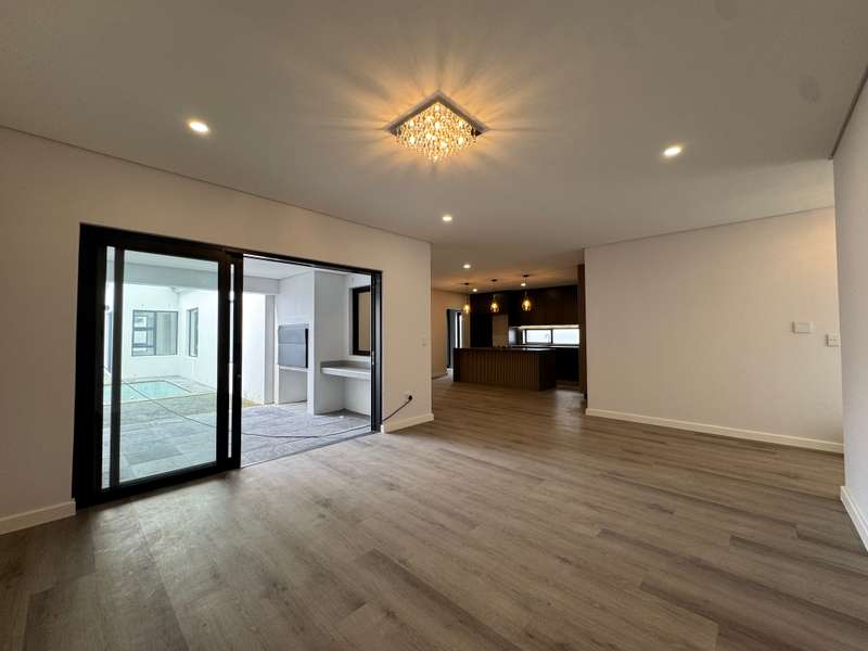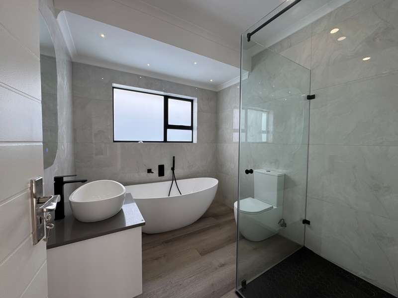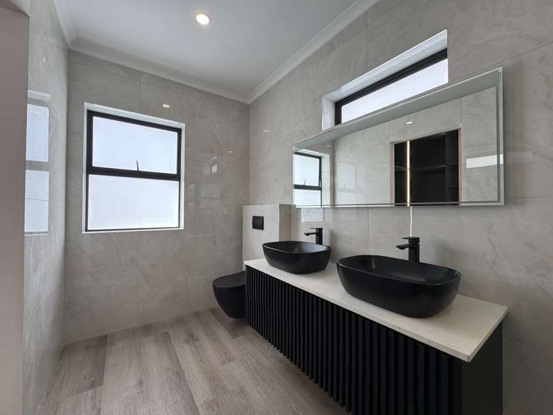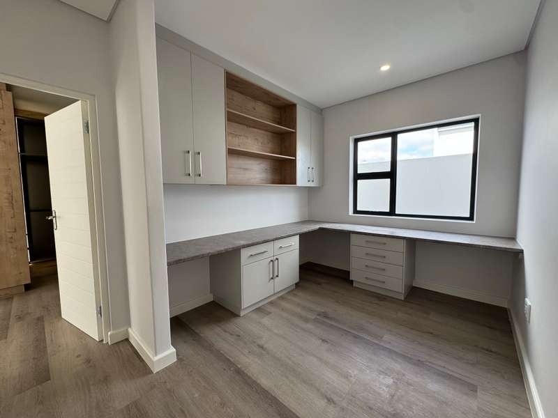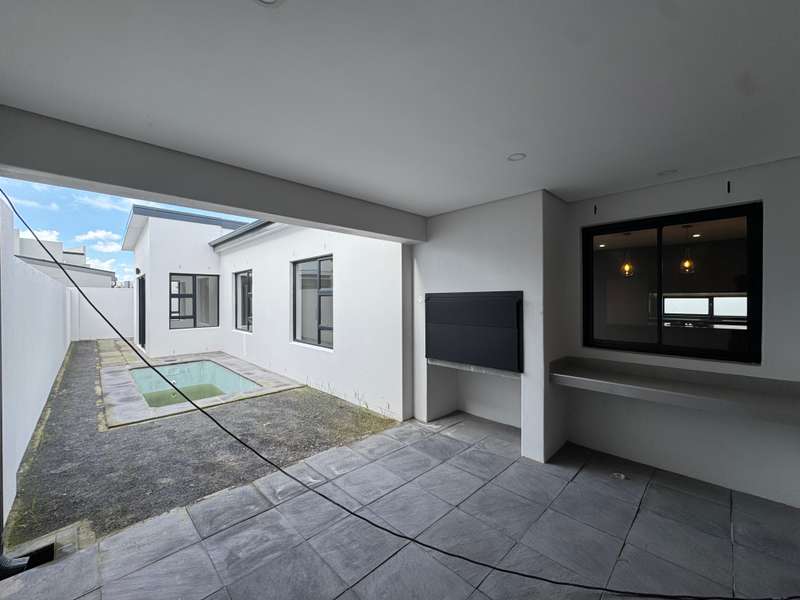 Spacious 4-Bedroom Single-Storey Home with Pool Discover the perfect balance of comfort and style in this beautifully designed single-storey home, set on a 330m² plot with a generous 220m² floor plan. Step inside to a bright and open-plan kitchen, dining, and lounge area—ideal for both everyday living and entertaining. The modern kitchen is complemented by a scullery for extra convenience, while sliding doors open to an outdoor entertainment space with a built-in braai and sparkling pool. This home offers four spacious bedrooms, including a luxurious master suite with a walk-through closet leading to a private en suite. A well-appointed guest bedroom with its own bathroom provides comfort for visitors, while two additional large bedrooms are accommodated by a full family bathroom. Work from home with ease in the spacious study, and enjoy the practicality of a double garage with direct access. With generous spaces inside and out, this property is ideal for families who love to entertain and relax in style.