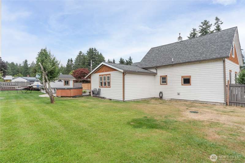 Beautifully updated 2-story home offering farmhouse charm in the heart of downtown—just steps from shops, restaurants, & local school. This 3-bed, 2-bath home features a spacious primary suite w/ ensuite bath. Recent upgrades include a new front porch, newer siding, & a newer roof. The functional layout provides comfortable living w/ warm, inviting finishes throughout. Enjoy a fully fenced backyard w/ patio & deck—perfect for entertaining or relaxing in the hot tub while watching sunsets over the Olympic Mountains. Plenty of room to garden, play, or unwind. Conveniently located minutes from the marina, boat launch, & Quil's popular swim beach. Just a 40-min drive to Sequim or Poulsbo. Turnkey & full of charm—schedule a showing today!