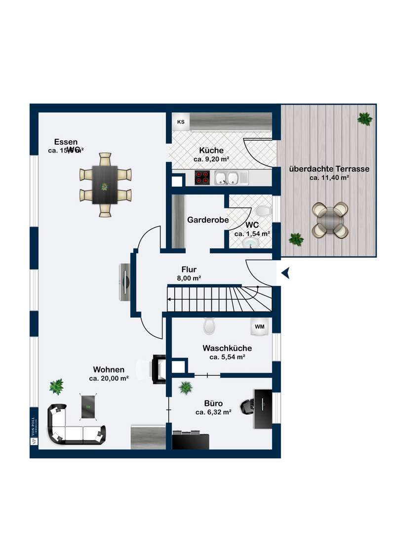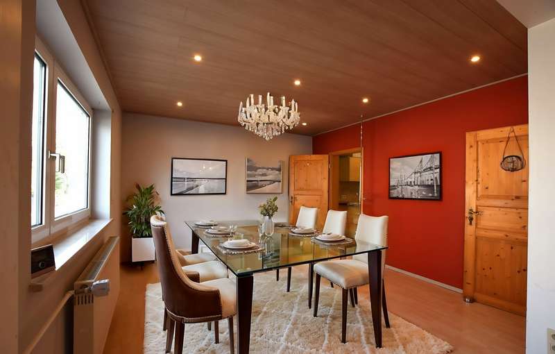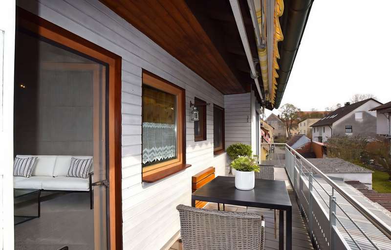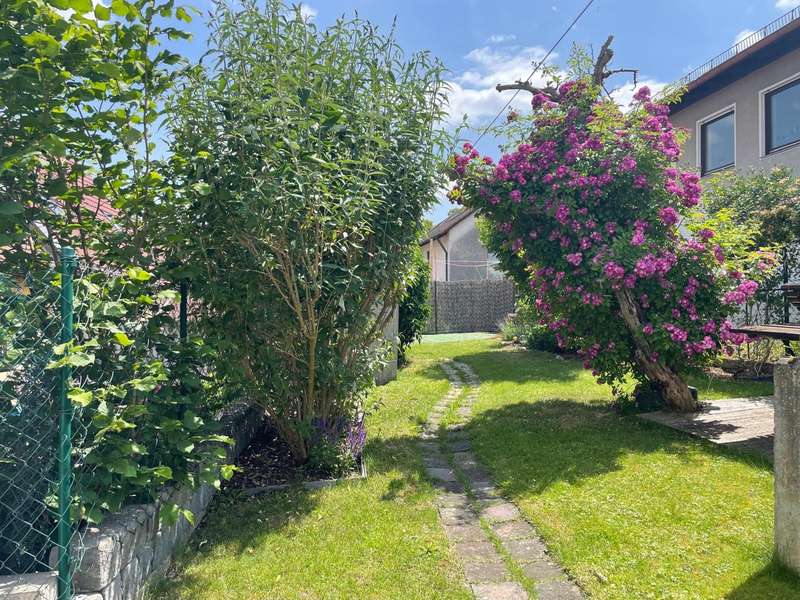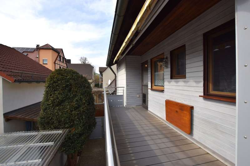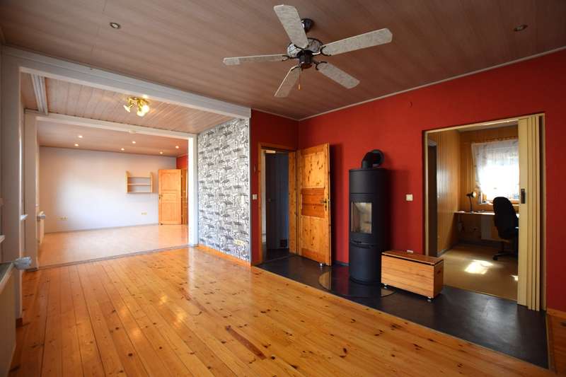 This beautiful detached house offers everything a family could want for modern and comfortable living. Situated on a spacious plot, the house not only impresses with its excellent location, but also with its well thought-out and well-designed room layout, which creates a perfect balance between functionality and comfort. On the first floor, you are greeted by a large, bright living/dining area, which is pleasantly flooded with light thanks to its many windows and offers plenty of space for the whole family. The open design of the room encourages socializing and creates an inviting atmosphere. Directly adjacent is the fitted kitchen, which is equipped with modern appliances and has practical access to the covered terrace. This is another highlight of the house and offers additional space for relaxing hours outdoors, regardless of the weather. There is also a guest WC on the first floor, which provides additional comfort, as well as a separate study, which is perfect as a home office or for private hobbies. There are two spacious bedrooms on the upper floor, one of which has an en-suite bathroom and the other an adjoining dressing room with balcony access. Here you can start the day with a beautiful view of the garden or end the evening in the fresh air. A further bedroom/guest room offers plenty of space and can be individually arranged as required. All rooms are bright and friendly, creating a pleasant living atmosphere. The large balcony with awning rounds off the offer and invites you to spend relaxing hours outdoors. The garden is a real oasis with two practical sheds that offer plenty of storage space for garden tools and other utensils. The house is ideal for families who value a good layout, a high quality of life and a quiet yet central location. See this great offer for yourself and arrange a viewing today!