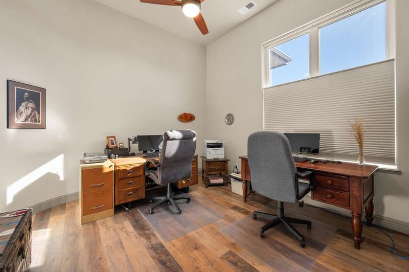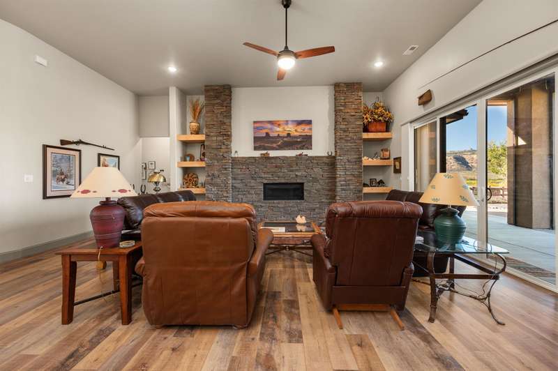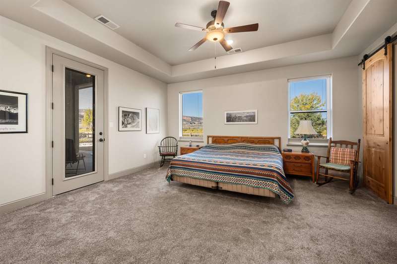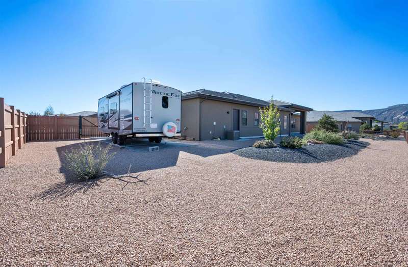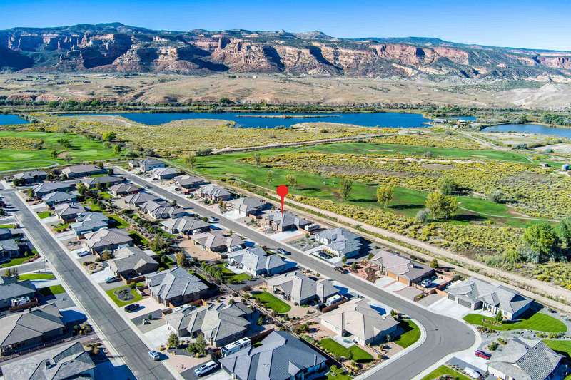 Wake up each day to sweeping, unobstructed views of the Colorado National Monument and the lush greens of the Monument Course at Adobe Falls National Golf Course. This exceptional single-story ranch-style home sits directly along the #8 Fairway, offering an unrivaled combination of privacy, prestige, and natural beauty. Whether you’re an avid golfer or simply love serene scenery, this location elevates everyday living into a retreat-like experience. Inside, soaring ceilings and an expansive open floor plan frame the dramatic views from nearly every angle. The heart of the home features a gourmet-ready kitchen with a large granite island, spacious pantry, flowing seamlessly into a bright living area anchored by a cozy gas fireplace. Four generously sized bedrooms each include large walk-in closets, creating comfortable retreats for family and guests alike. Outdoors, this property truly shines. Professionally designed Xeriscape landscaping ensures low maintenance beauty year-round, while a large RV parking area with a 30-amp electrical hookup offers flexibility for adventure seekers. The covered patio, complete with motorized sunshades on its west and south sides, is your private front-row seat to the golf course’s manicured fairways and the dramatic red-rock formations of the Monument beyond—perfect for morning coffee, sunset cocktails, or evening gatherings. Just three years old and meticulously cared for by its original owners, this home blends modern craftsmanship with an unparalleled setting. More than a residence, it’s a lifestyle—where breathtaking vistas, championship golf, and effortless living come together to create a home you’ll never want to leave.