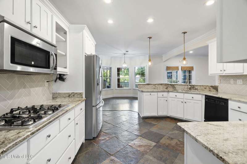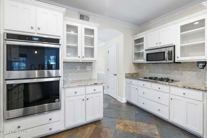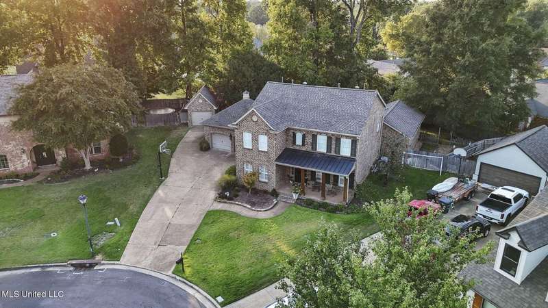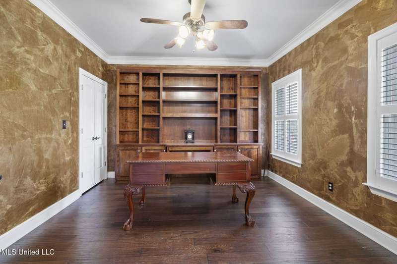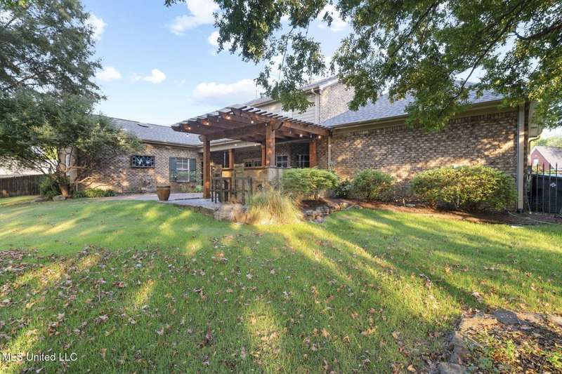 Beautifully updated home at the end of a quiet cul-de-sac! It's timeless curb appeal immediately draws you in with its large front porch, NEW ROOF, professional landscaping with irrigation system, and stacked-stone flower beds that frame the front of the home. Step inside and discover a floor plan that blends elegance with function. A private office with French doors makes a warm first impression, complete with a transom window, large built-in bookshelf, and upgraded light fixtures. A formal dining room with chair rail and trim work is ready for holidays or dinner parties, while a guest bath with custom wallpaper and a handy hall closet add thoughtful touches. The living room is the true heart of the home, anchored by a floor-to-ceiling brick fireplace flanked by custom bookshelves with graceful arch details. The open layout connects seamlessly to the kitchen and breakfast area, where you'll find granite countertops, custom white cabinets, new stainless steel double ovens, built-in gas cooktop, microwave, dishwasher, and a beautiful tile backsplash. A pantry and breakfast bar make this space as practical as it is inviting, The large laundry has a sink. Out back, entertaining is a breeze with a fully equipped outdoor kitchen featuring a built-in grill, bar, refrigerator, and cooler drawer. The fenced backyard, shaded with mature trees, offers privacy and plenty of room to relax. There is also a door to the garage from the patio. The primary suite also has a private entrance to the backyard, and is a retreat of its own, with hardwood floors and crown molding. The en-suite bath includes dual vanities (one with a makeup nook), a jetted tub, separate tiled shower, and dual walk-in closets, all highlighted by 10-foot ceilings with recessed lighting. Upstairs, a spacious living area offers flexibility for a playroom, media room, or hangout space. Three bedrooms share a Jack-and-Jill bath with two vanities, and a large storage closet with French doors adds function. Throughout the home, you'll find fresh paint, fresh carpet, wrought-iron stair railing, hardwood floors, crown molding, and abundant natural light from the many windows dressed in plantation shutters. Practical features include an attached 2-car garage plus a detached garage with electric--ideal for storage, projects, or a workshop. Recent updates like the new AC unit and new stove provide peace of mind. This home isn't just beautiful on its own--it's part of a sought-after neighborhood with sidewalks and several lakes. Known as one of the best places for trick-or-treating and Christmas lights, the community is also zoned for the award-winning Hernando School District. With 4 bedrooms, 2.5 baths, and 3,134 square feet, this home combines timeless design, modern updates, and community charm--all in one of Hernando's most desirable locations.
