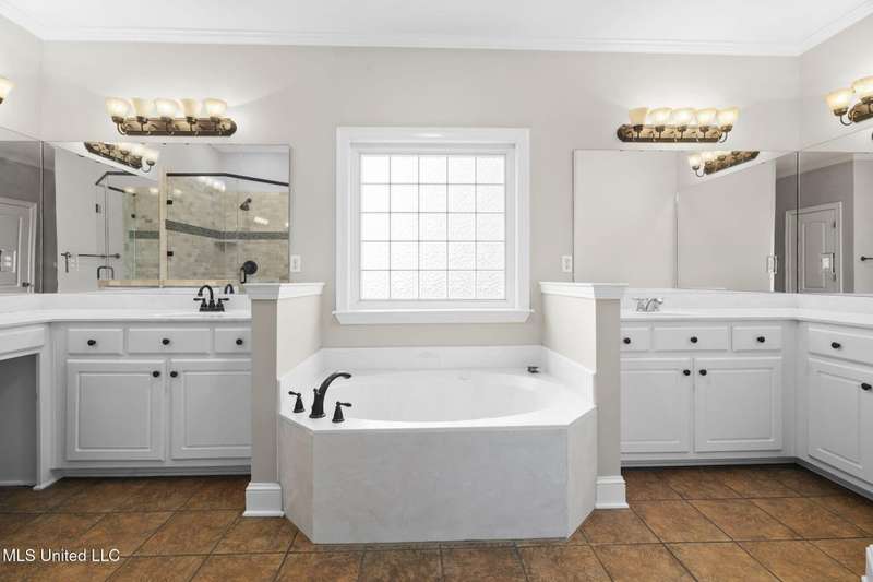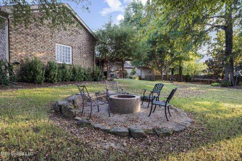 Beautifully updated home at the end of a quiet cul-de-sac! It's timeless curb appeal immediately draws you in with its large front porch, NEW ROOF, professional landscaping with irrigation system, and stacked-stone flower beds that frame the front of the home. Step inside and discover a floor plan that blends elegance with function. A private office with French doors makes a warm first impression, complete with a transom window, large built-in bookshelf, and upgraded light fixtures. A formal dining room with chair rail and trim work is ready for holidays or dinner parties, while a guest bath with custom wallpaper and a handy hall closet add thoughtful touches. The living room is the true heart of the home, anchored by a floor-to-ceiling brick fireplace flanked by custom bookshelves with graceful arch details. The open layout connects seamlessly to the kitchen and breakfast area, where you'll find granite countertops, custom white cabinets, new stainless steel double ovens, built-in gas cooktop, microwave, dishwasher, and a beautiful tile backsplash. A pantry and breakfast bar make this space as practical as it is inviting, The large laundry has a sink. Out back, entertaining is a breeze with a fully equipped outdoor kitchen featuring a built-in grill, bar, refrigerator, and cooler drawer. The fenced backyard, shaded with mature trees, offers privacy and plenty of room to relax. There is also a door to the garage from the patio. The primary suite also has a private entrance to the backyard, and is a retreat of its own, with hardwood floors and crown molding. The en-suite bath includes dual vanities (one with a makeup nook), a jetted tub, separate tiled shower, and dual walk-in closets, all highlighted by 10-foot ceilings with recessed lighting. Upstairs, a spacious living area offers flexibility for a playroom, media room, or hangout space. Three bedrooms share a Jack-and-Jill bath with two vanities, and a large storage closet with French doors adds function. Throughout the home, you'll find fresh paint, fresh carpet, wrought-iron stair railing, hardwood floors, crown molding, and abundant natural light from the many windows dressed in plantation shutters. Practical features include an attached 2-car garage plus a detached garage with electric?ideal for storage, projects, or a workshop. Recent updates like the new AC unit and new stove provide peace of mind. This home isn't just beautiful on its own?it's part of a sought-after neighborhood with sidewalks and several lakes. Known as one of the best places for trick-or-treating and Christmas lights, the community is also zoned for the award-winning Hernando School District. With 4 bedrooms, 2.5 baths, and 3,134 square feet, this home combines timeless design, modern updates, and community charm?all in one of Hernando's most desirable locations.