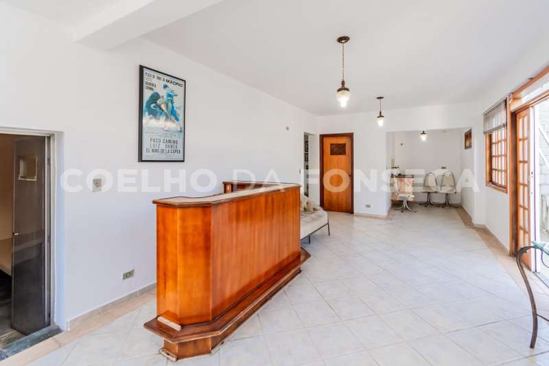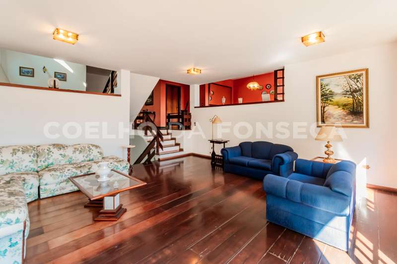 Casa antiga, ideal para retrofit, com 4 quartos (2 suítes), salas de estar, jantar, lareira e TV, espaço para área gourmet com cozinha, banheiro e sauna, 6 banheiros (incluindo lavabo e banheiro de empregada). Pé direito alto, fundos para área verde sem vizinhos. Casa elevada, janelas das outras casas respeitam a privacidade. Garagem para 3 carros cobertos e 3 descobertos. Localização em rua tranquila, com vista excepcional permanente.
