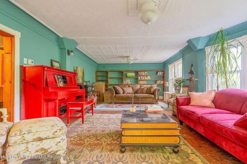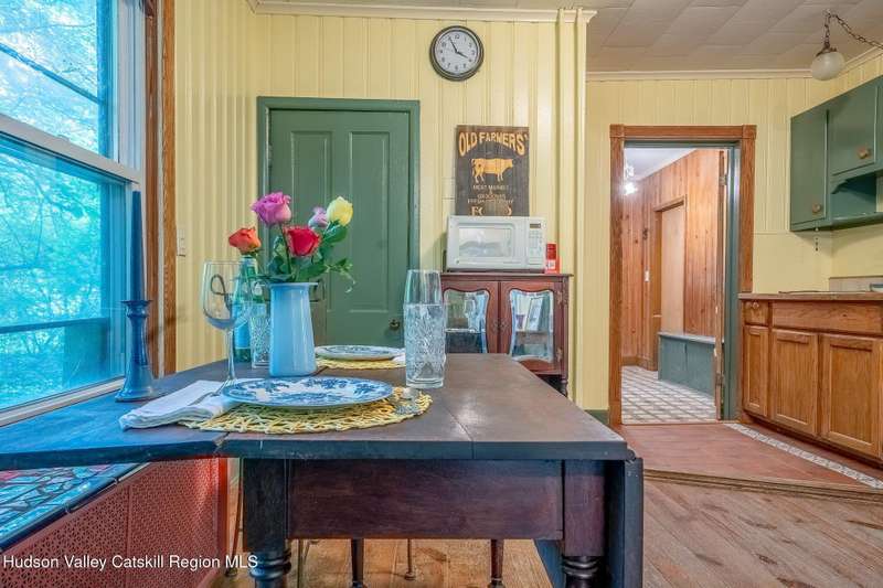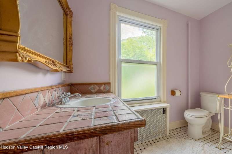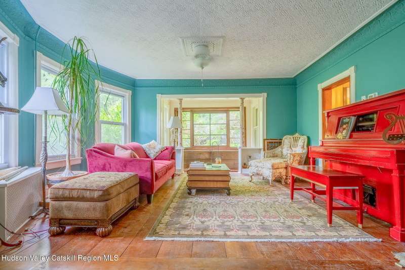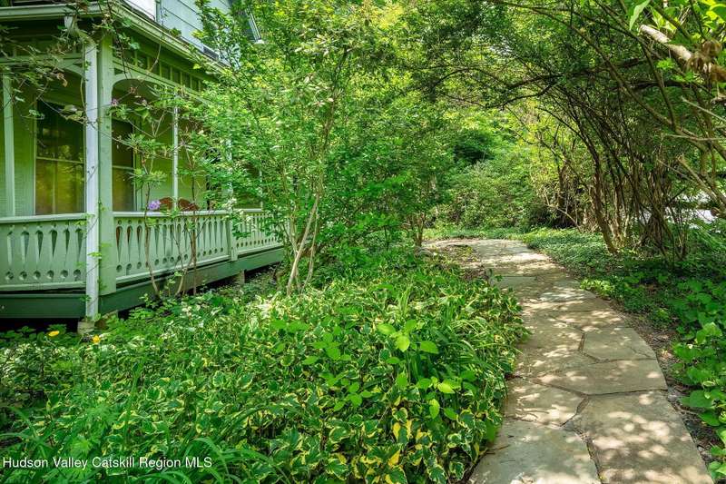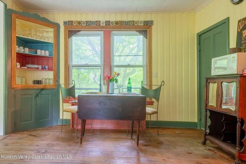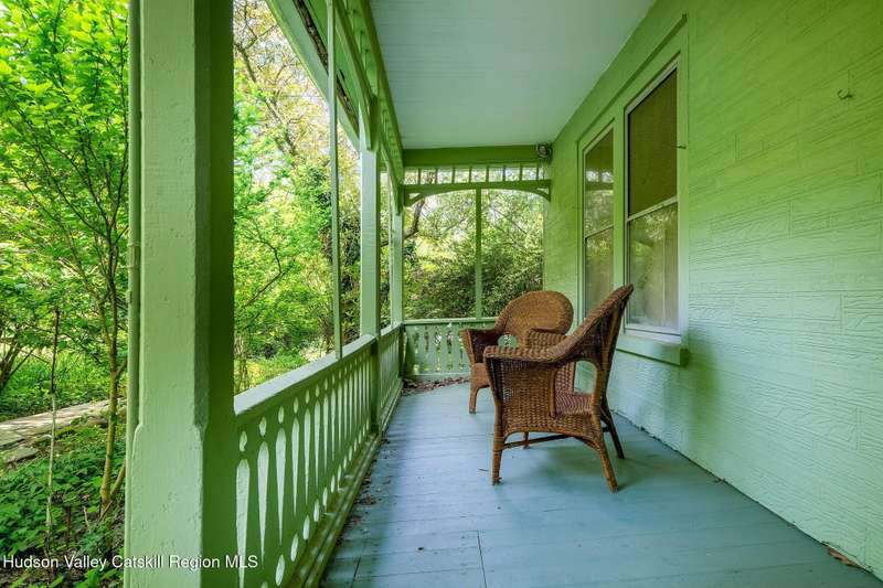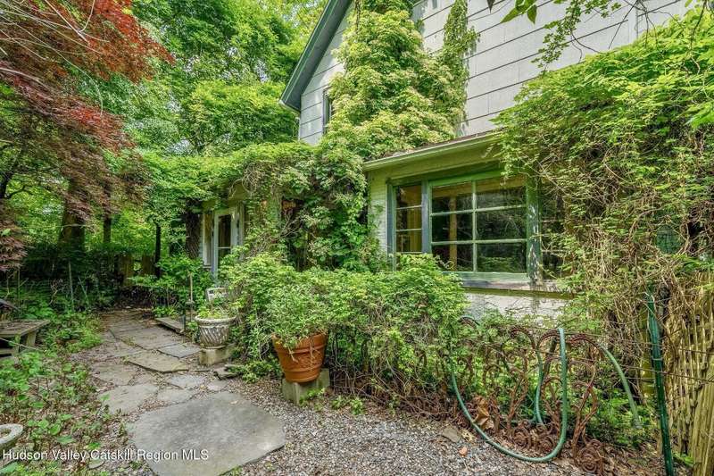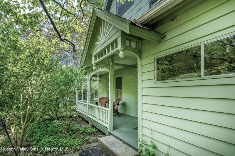 WHIMSICAL WOODSTOCK ARTS AND CRAFTS - Live in a home steeped in history while making your own. Welcome to ''Quixote'', built in 1905 by Woodstock builder and former Artificer in the Civil War, John ''Barney'' Hoyt. Vintage character blends seamlessly with modern convenience. Original details of this 3 bedroom gem include wide plank floor boards, pressed tin ceilings, custom built-ins and a rocking chair front porch. Subsequent artistic owners have added hand-painted murals and accents, which have been kept, making Quixote the quintessential Woodstock home. The property has a lovely elegance, colorful funk, and an undeniable great vibe. Meanwhile, many recent improvements-roof, heating system, drainage system, generator-bring the home's function into the 21st Century. Every room (except the kitchen) on all 3 levels has been fully renovated to a high standard, including new or refreshed flooring and new interior paint. The living room/parlor off the eat-in country kitchen has a high pressed tin ceiling and is bathed in natural light by South and East-facing window sets. Upstairs, three restored bedrooms each showcase their own rich color palette. The 3rd floor finished attic space adds 460 square feet configured as a 2 room suite with its own half bath. Outside, lush, 100-plus year old gardens wrap the home with climbing roses, peonies, poppies, wisteria, lilacs, honeysuckle and more, ensuring something is always in bloom throughout the growing season. Sculptures are thoughtfully placed throughout. Enjoy all this in a IDEAL location. On the NYC bus route one mile from the Bearsville Post Office, gourmet Cub Market, restaurants and Bearsville Theater; 3 miles from the shops, galleries, restaurants and music venues of the one-and-only Woodstock, NY. The greater Hudson River Valley/Catskill Mountain region has all one could hope for all in one place-world class natural beauty, outdoor recreational resources, arts, culture and cuisine. It's why we live here. Now you can, too!