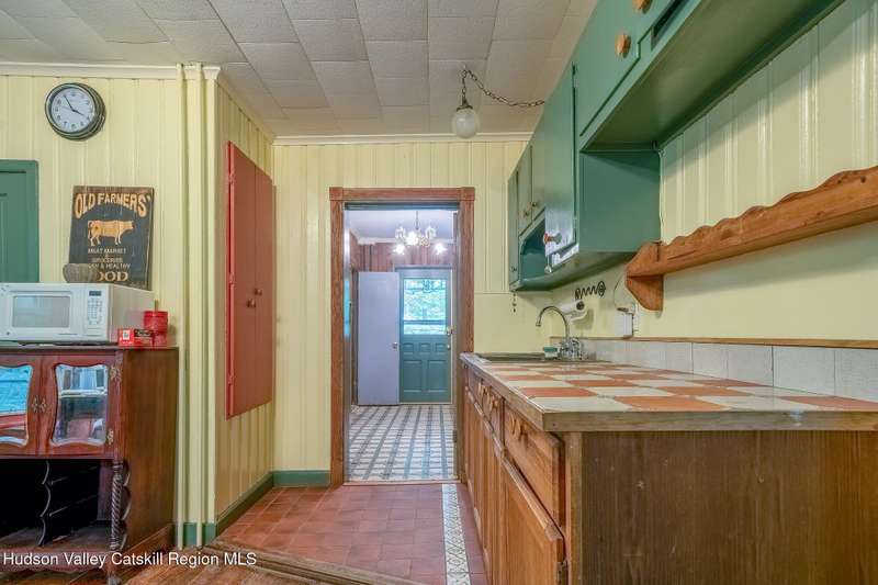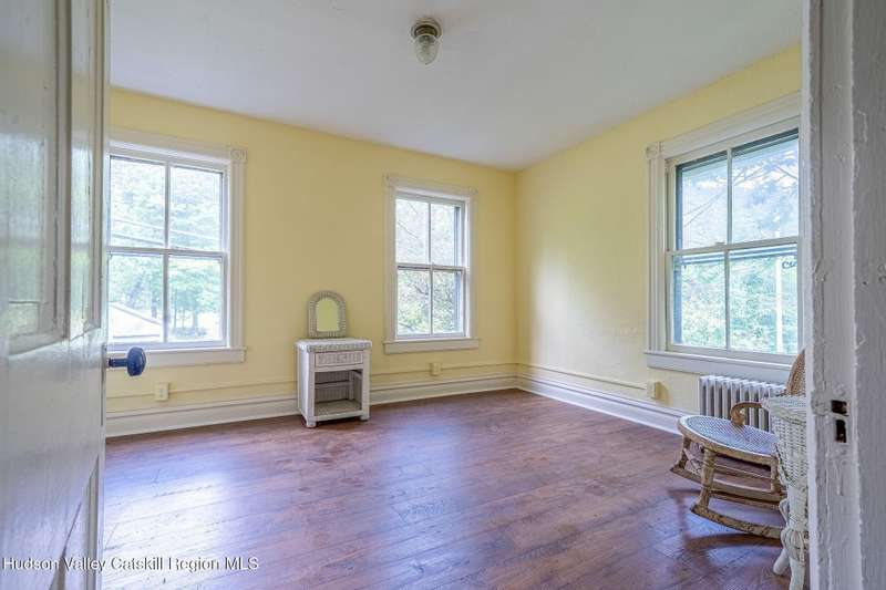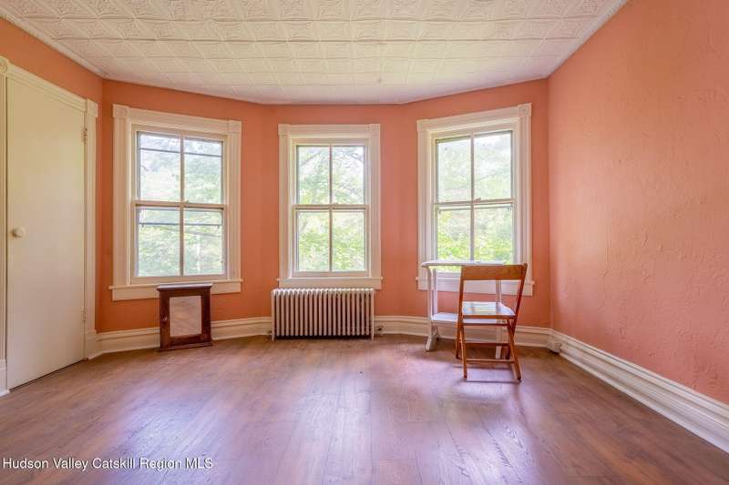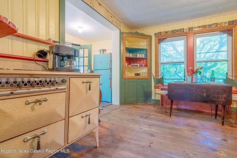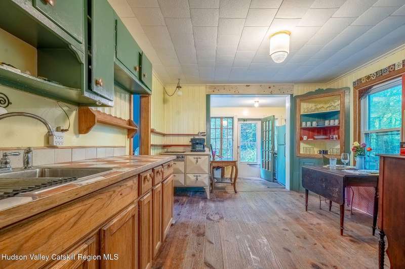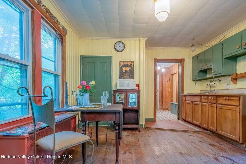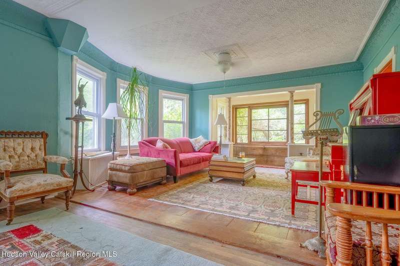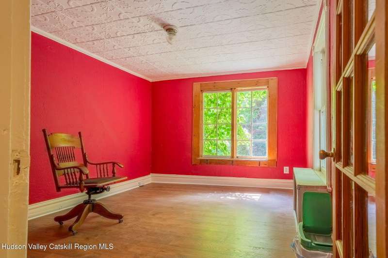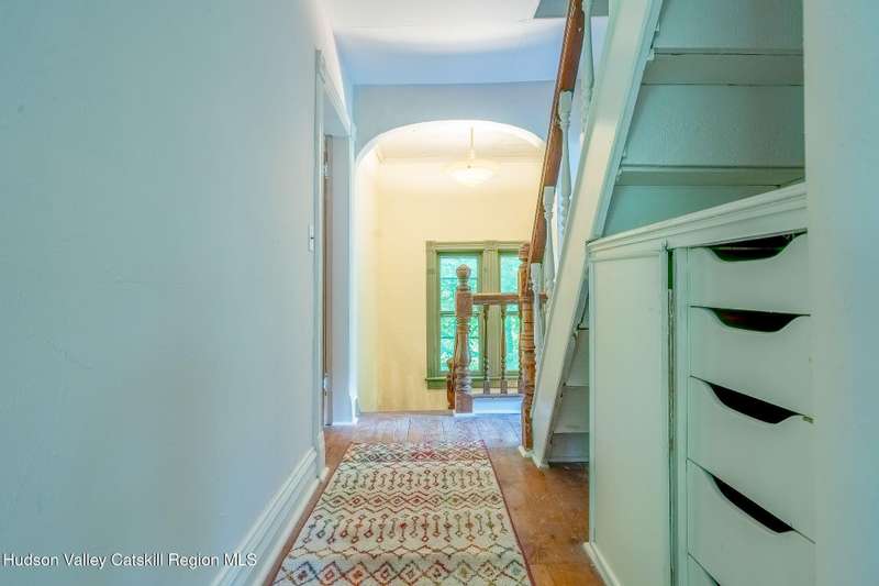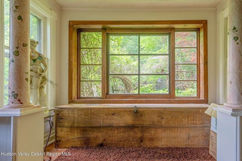 WHIMSICAL WOODSTOCK ARTS AND CRAFTS - Live in a home steeped in history while making your own. Welcome to ''Quixote'', built in 1905 by Woodstock builder and former Artificer in the Civil War, John ''Barney'' Hoyt. Vintage character blends seamlessly with modern convenience. Original details of this 3 bedroom gem include wide plank floor boards, pressed tin ceilings, custom built-ins and a rocking chair front porch. Subsequent artistic owners have added hand-painted murals and accents, which have been kept, making Quixote the quintessential Woodstock home. The property has a lovely elegance, colorful funk, and an undeniable great vibe. Meanwhile, many recent improvements-roof, heating system, drainage system, generator-bring the home's function into the 21st Century. Every room (except the kitchen) on all 3 levels has been fully renovated to a high standard, including new or refreshed flooring and new interior paint. The living room/parlor off the eat-in country kitchen has a high pressed tin ceiling and is bathed in natural light by South and East-facing window sets. Upstairs, three restored bedrooms each showcase their own rich color palette. The 3rd floor finished attic space adds 460 square feet configured as a 2 room suite with its own half bath. Outside, lush, 100-plus year old gardens wrap the home with climbing roses, peonies, poppies, wisteria, lilacs, honeysuckle and more, ensuring something is always in bloom throughout the growing season. Sculptures are thoughtfully placed throughout. Enjoy all this in a IDEAL location. On the NYC bus route one mile from the Bearsville Post Office, gourmet Cub Market, restaurants and Bearsville Theater; 3 miles from the shops, galleries, restaurants and music venues of the one-and-only Woodstock, NY. The greater Hudson River Valley/Catskill Mountain region has all one could hope for all in one place-world class natural beauty, outdoor recreational resources, arts, culture and cuisine. It's why we live here. Now you can, too!