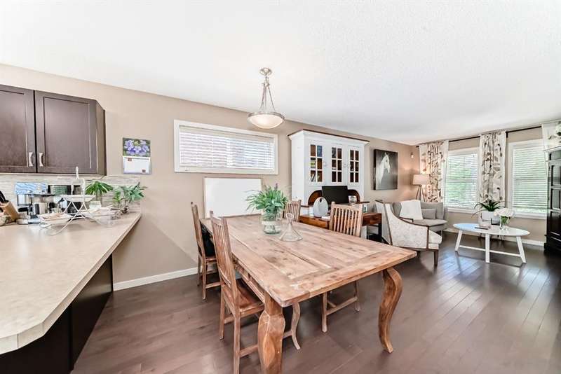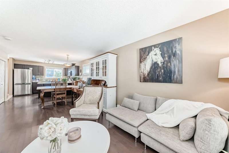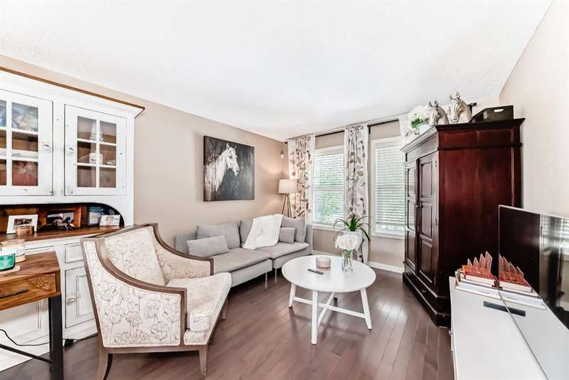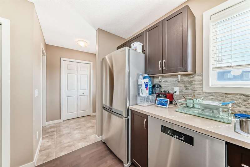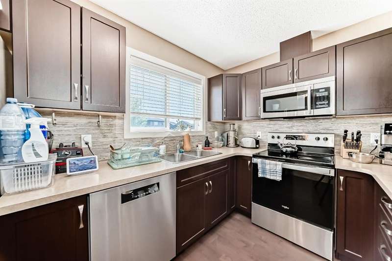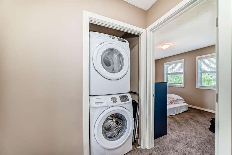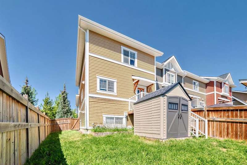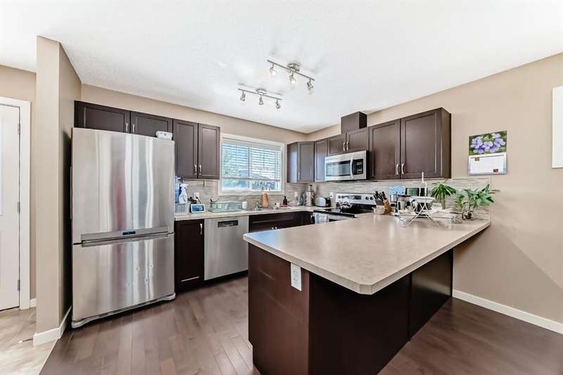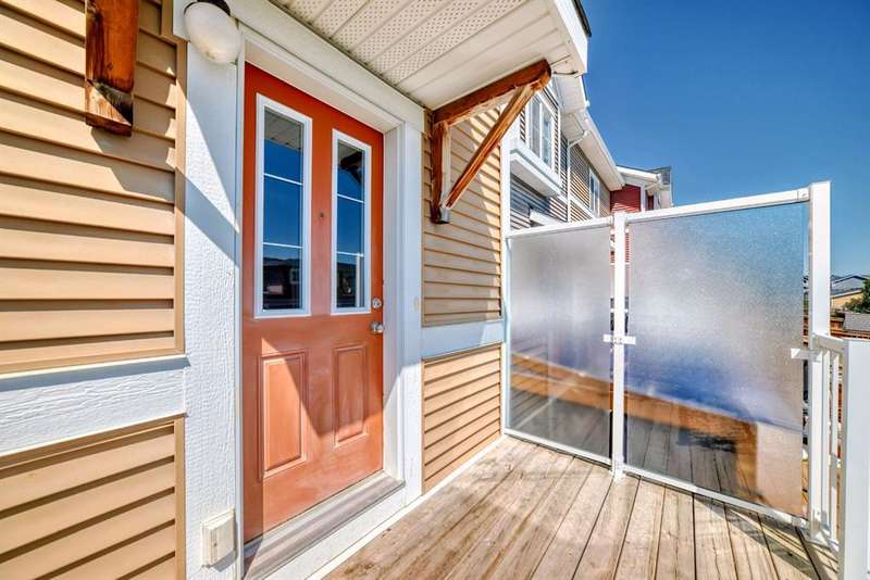 Welcome to this beautifully maintained 2 bedroom and 2 bathroom end-unit townhouse offering exceptional natural light and a large, open-concept floorplan, perfect for modern living. As you step inside, you’ll immediately notice the airy feel and generous layout—ideal for both relaxing and entertaining. The main floor has a spacious kitchen with stainless steel appliances, loads of counter space and cabinets, extra storage, and view out to the back yard. The back entry is where you'll find a 2 piece powder room and a door which leads to the east facing deck and yard, perfect for morning coffee in the summers. Upstairs, you’ll find two spacious bedrooms, and 2 full bathrooms, plus the convenience of upper level laundry. The partly finished basement provides ample potential with room for a third bedroom and a rough-in for a future bathroom, and has a large finished family room for movie nights or a teenager hangout - perfect for growing families or added guest space. Enjoy entertaining and summer BBQs on the private deck, and take advantage of the dedicated parking pad out back with plenty of room to build a future garage. Located in a vibrant, family-friendly neighborhood, this home is just steps from schools, parks, scenic walking paths, and local restaurants. It’s the perfect blend of comfort, space, and convenience—ready for you to move in and make it your own!