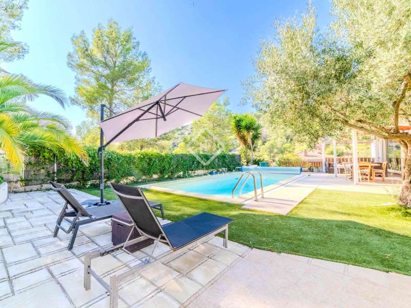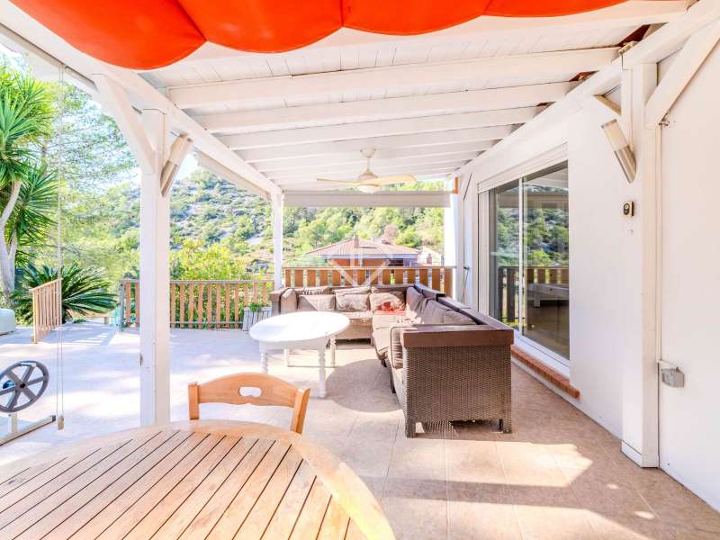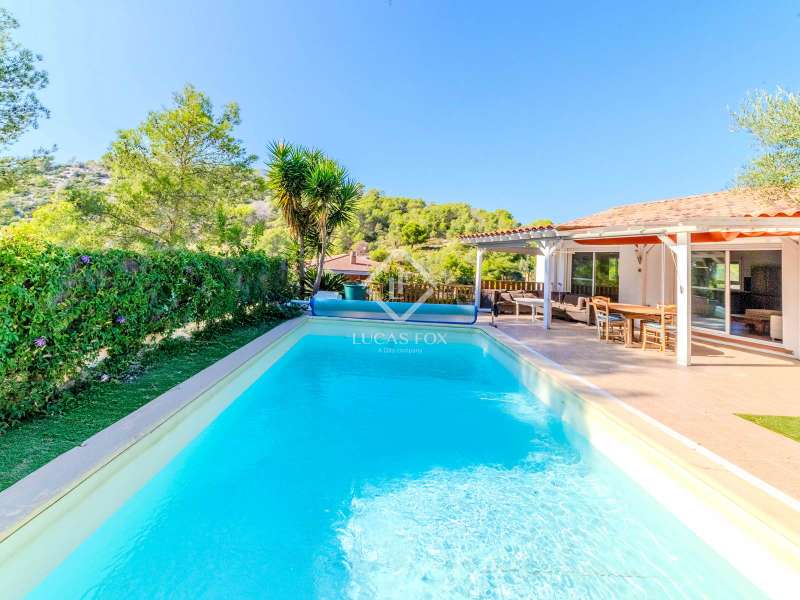 Charming house with a pool in the hills of Olivella, overlooking the Garraf Natural Park. This spacious and peaceful home offers a privileged setting, perfect for families or anyone seeking tranquility and comfort in a natural environment. The property features a large swimming pool, an outdoor kitchen with a barbecue, and several terraces, all surrounded by well-maintained gardens with automatic irrigation, making upkeep effortless throughout the year. At the top of the plot, a fruit tree area adds privacy and a charming, natural touch. The main floor includes a bright living-dining area with an open kitchen, a master suite with jacuzzi bathroom, a double bedroom, a third bedroom, and a bathroom with a shower. The lower floor offers another suite with terrace access and generous storage areas, which can easily be converted into an additional bedroom, providing potential to expand the home. The exterior is south-facing, enjoying sun all day, and features multiple terraces around the house. It also includes enclosed parking for two vehicles. Located in Can Suria, just 15 minutes from Sitges with its beaches, restaurants, and shops, this property combines privacy, comfort, and serenity. A unique opportunity to enjoy a peaceful lifestyle immersed in nature. Please contact us to arrange a viewing.