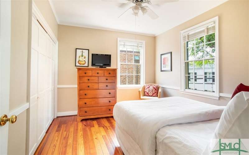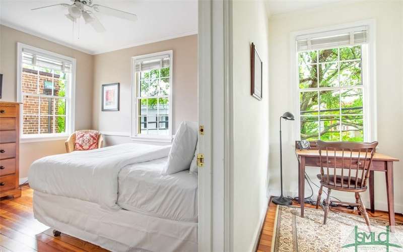 Watch the ships cruise down the Savannah River from your front porch & walk to Savannahs best restaurants, cafes & shops! This move-in-ready Federal-style c.1816 home is ideally located in the premier Washington Ward neighborhood in the heart of Savannahs National Historic Landmark District. Steps from River Street, Bay Street, Trustees Garden & business/entertainment corridors, this well-maintained, freestanding 3 BR/2.5 BA cottage offers stunning natural light, refinished heart pine floors, updated baths, covered porch, private courtyard & off-street parking. The main level includes a cozy living room w/ fireplace, spacious dining room, updated kitchen, powder room & more. The second level offers a primary suite with 3 closets & en-suite bath w/ walk-in shower plus 2 additional bedrooms, 1 renovated full bath & laundry area. Impeccably maintained by the current owners who added a 3rd bedroom & made numerous upgrades this home is also a high-performing, non-owner occupied STVR