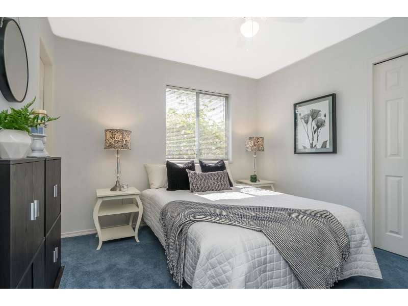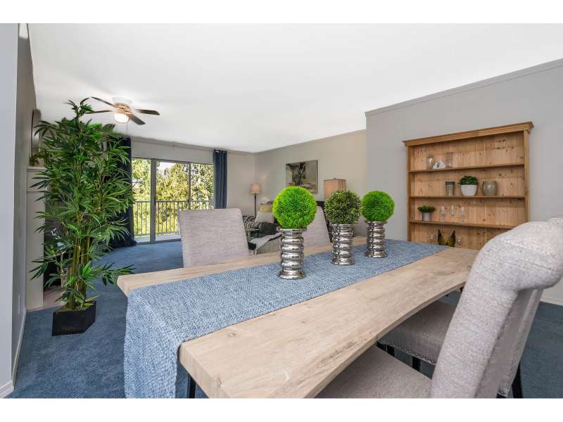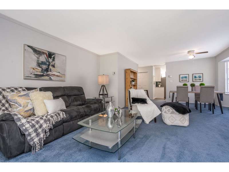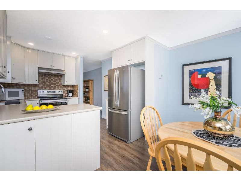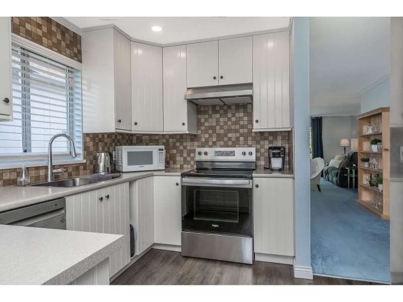 WELCOME HOME to this spacious 55+ townhome in fantastic Forrest Edge, a rental-free complex. This 2 bed, 2 bath home is ideal for downsizes who still want space. The large living and dining room will fit all your furniture! The primary bedroom fits a king! Recently updated in the last 2/3 years with new carpet, S/S kitchen appliances, washer and dryer and HEAT PUMP for heat and AC with 2 mini splits. Complete with 2 dedicated parking spots, one covered. Large east facing balcony looks over Old Riverside Park with lovely walking trails. On a bus route, and short distance to amenities, including Sevenoaks and West Oaks Malls, and pet friendly. (id:58403)