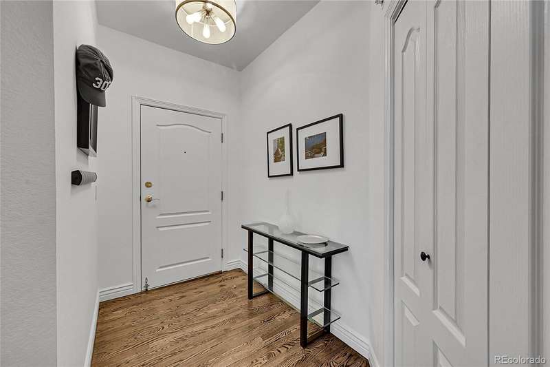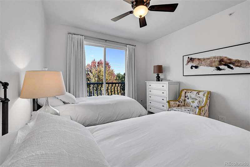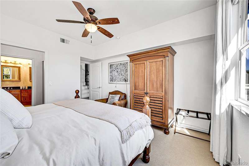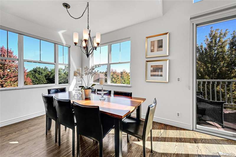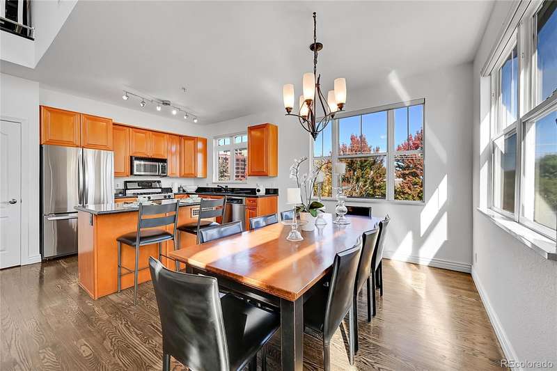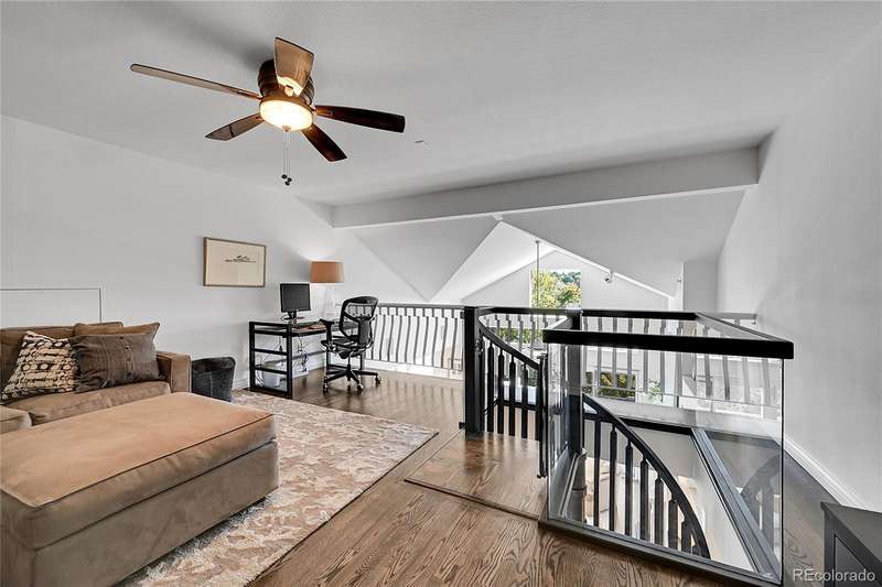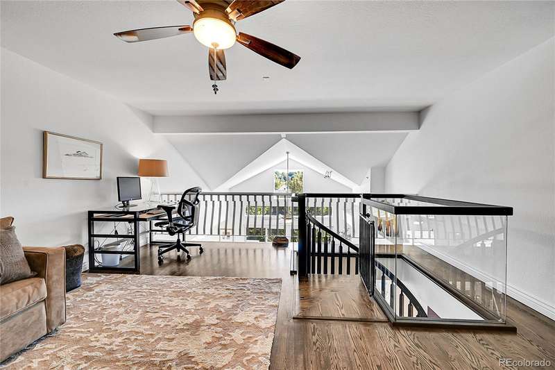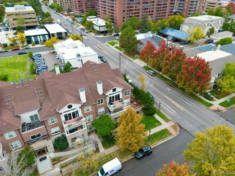 This exceptional top floor condominium situated in the prestigious Le Jardin complex in Cherry Creek presents a remarkable opportunity for discerning buyers. Offering 2 well-appointed bedrooms and 2 bathrooms plus a loft overlooking the living room within 1,545 square feet, this residence combines elegance with modern living. The expansive living room features a high vaulted ceiling, hardwood floors, with superb natural light, creating an inviting environment. The kitchen, equipped with stainless steel appliances and dark stone countertops, flows seamlessly into the dining area, perfect for both casual and formal dining experiences. The primary bedroom suite boasts an ensuite bathroom with a double vanity and luxurious shower with custom built in cabinetry in the closet area. Residents can enjoy a private balcony, ideal for outdoor dining or relaxation while overlooking wooded views of the neighborhood and skyline. The property includes 2 deeded parking spaces in the private garage, ensuring convenience in urban settings. The community offers a host of amenities, including a fitness center and beautifully landscaped outdoor spaces, enhancing your living experience. Located in the vibrant Cherry Creek neighborhood, this property offers easy access to up-scale shopping, dining, and recreational activities, making it an ideal choice for those seeking a sophisticated urban lifestyle. These coveted top floor corner condominiums rarely come on the market, don't wait to set up your private tour!
