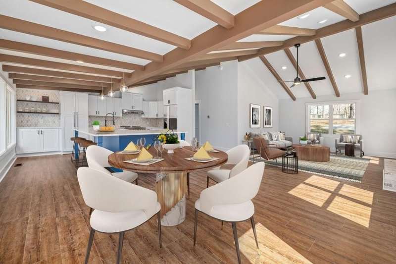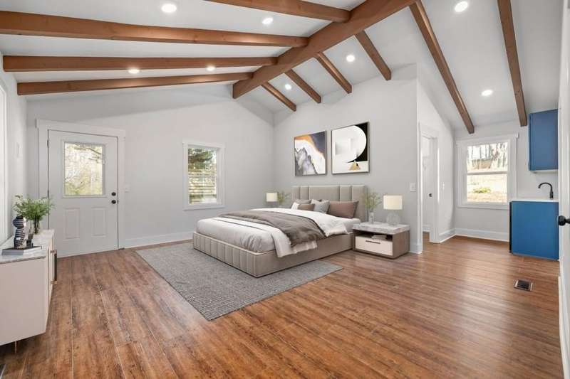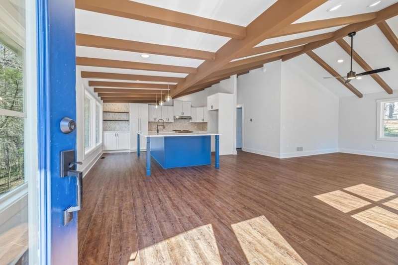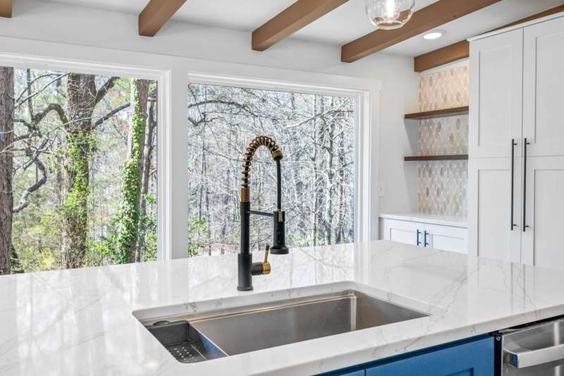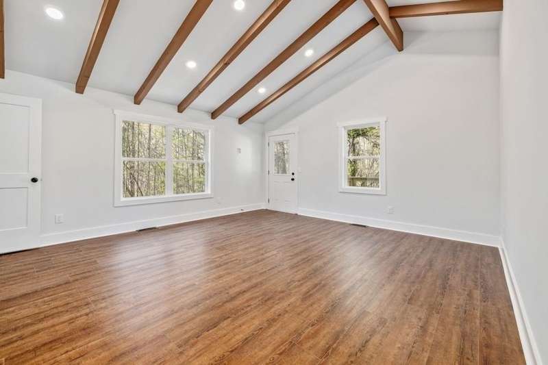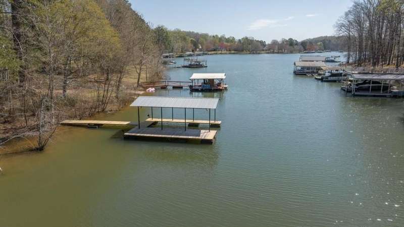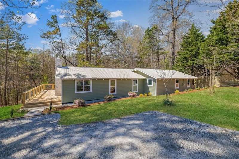 This newly renovated home on lake Lanier offers a private dock, positioned in a deep water cove yet easy access to big open water. Experience main level living with upgrades and amenities found throughout every corner. The new deck welcomes you and invites a seamless transition of indoor-outdoor living. Step inside and find a sprawling ranch style floor plan. The open concept plan is made to entertain yet crafted for everyday functionality. In the kitchen, find an abundance of cabinetry adorned with Quartz countertops and marble backsplash. An oversized oven and cooktop offer an impressive focal point. Large picture windows invite the outdoors in and create a serene and natural setting while enjoying the conveniences of a modern luxury kitchen. A large walk-in pantry is craft-fully tucked within the cabinetry for a sleek design. Just off the kitchen, there's space for a dining table, or gather around the kitchen island for seating. The kitchen offers a view to the spacious living room centered around a brick fireplace and beamed ceilings. Smart home features can be found throughout with Nest thermostat, night light capable ceiling lighting in both bathrooms, and Bluetooth connectivity found in the primary suite. The primary bedroom is spacious and thoughtfully designed, featuring vaulted ceilings, a private deck, and a coffee bar, suited to enjoy slow mornings at the lake without ever leaving the primary suite. The en-suite showcases a custom floor to ceiling tiled shower and separate soaking tub, along with a quartz accented double vanity. Dual walk in closets with one featuring a window for natural light and large enough to add a small desk or vanity. Two secondary bedrooms and a full bathroom are ready to accommodate. The guest full bathroom features quartz countertops and a large vanity. Located conveniently between secondary bedrooms and primary suite, the upgraded laundry room offers size and functionality. A gentle and short stroll takes you the water's edge and the newly decked 30 x 24 single slip dock. Although on public water, an irrigation well is available for your needs. Conveniently located just a few minutes to fuel docks on lake Lanier. This Dawsonville location offers the best of both worlds, a quiet setting and approx 2 miles from HWY 400 access with many shopping & dining options.