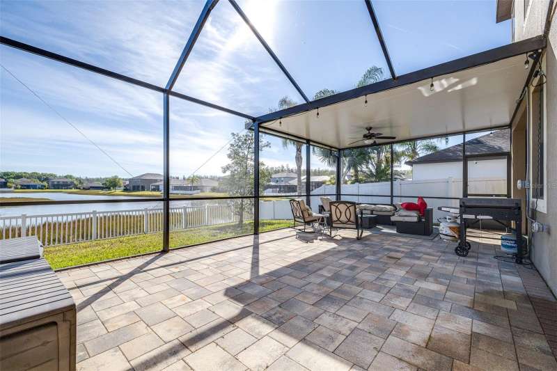 Welcome Home! This meticulously maintained 3,200 sq ft, 2-story gem offers the perfect combination of luxury and functionality. Located in the highly sought-after gated community of Trinity Preserve, where there are LOW HOA fees and NO CDD fees along with A rated schools! This home features 6 spacious bedrooms, including a convenient downstairs bedroom, and 4 full bathrooms. Upstairs, you'll find the expansive master suite along with 4 additional bedrooms, plus a dedicated laundry room for added convenience. Inside, you'll appreciate the high-end finishes including granite countertops and stainless steel appliances in the kitchen. No rear neighbors means ultimate privacy, with a peaceful pond just behind the home. The extended lanai offers extra shade in those summer heats and ample space to entertain. And with a 3-car garage, there's ample space for all your vehicles and storage needs. This exceptional home is move-in ready and waiting for you to make it your own!