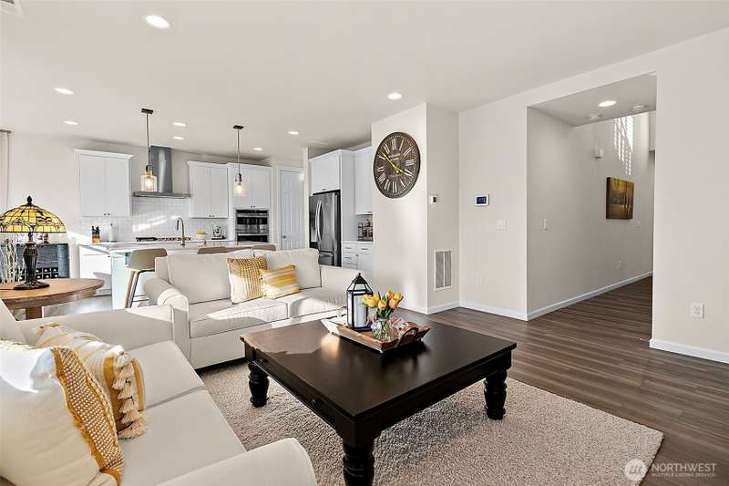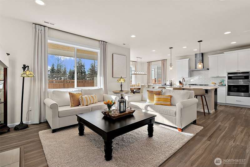 NEW PRICE! Richmond American Lowell plan at Tyee Ridge! Tehaleh’s scenic trails, parks & community amenities. Covered front porch opens to soaring 2-story entry. UPGRADED window treatments frame open-concept great room & floor to ceiling tile wrapped fireplace. LVP floors flow seamlessly throughout the main lvl. Kitchen w/quartz counters, Lg island, breakfast bar, SS appliances, gas range & built-in coffee nook. Sliding door opens from dining room to cedar-covered entertainment patio: fully fenced backyard w/storage shed & sprinkler system. Primary Suite retreat w/Lg 5-pc bath w/custom closet organizer. Upstairs loft, spacious secondary bdrms & convenient laundry! Heat pump-A/C, high speed internet, security system, & electric car charging.