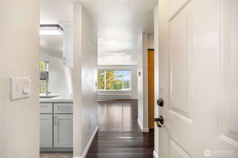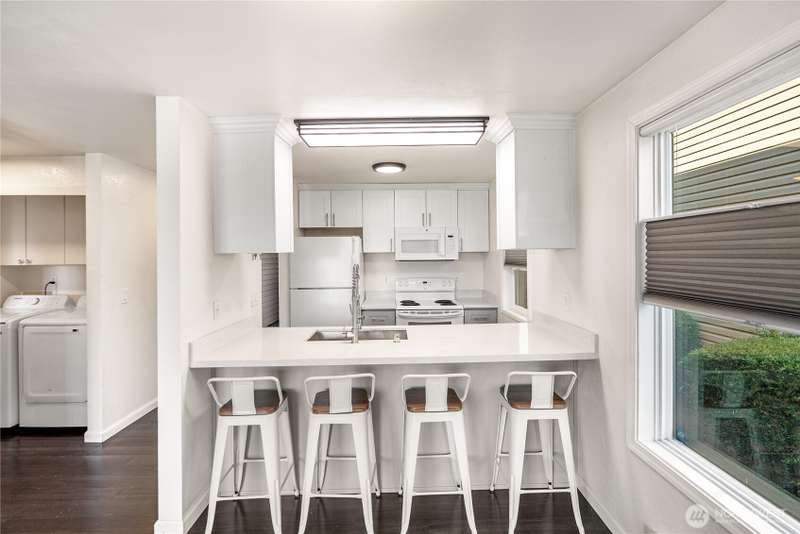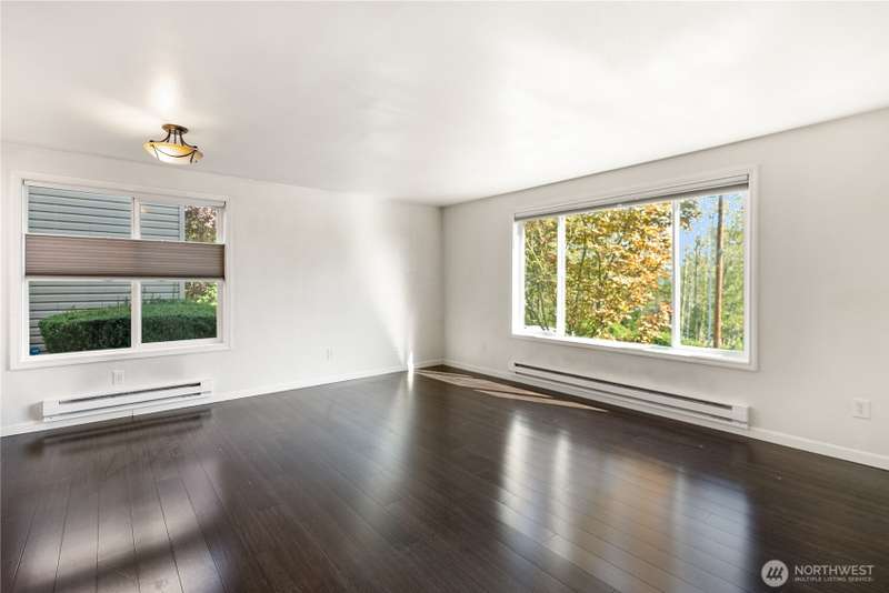 Bright and well-cared-for end-unit condo in North Everett with mountain views and beautiful sunrises. This 2-bedroom home offers an inviting eat-in kitchen, bamboo flooring, and washer/dryer hookups with appliances included. Reserved parking plus your own garage and driveway provide added convenience and storage. Enjoy the ease of nearby shopping, Everett Community College, Providence Hospital, and quick I-5 access. HOA covers water, sewer, garbage, landscaping, earthquake, and exterior insurance—low-maintenance living at its best. WELCOME HOME!