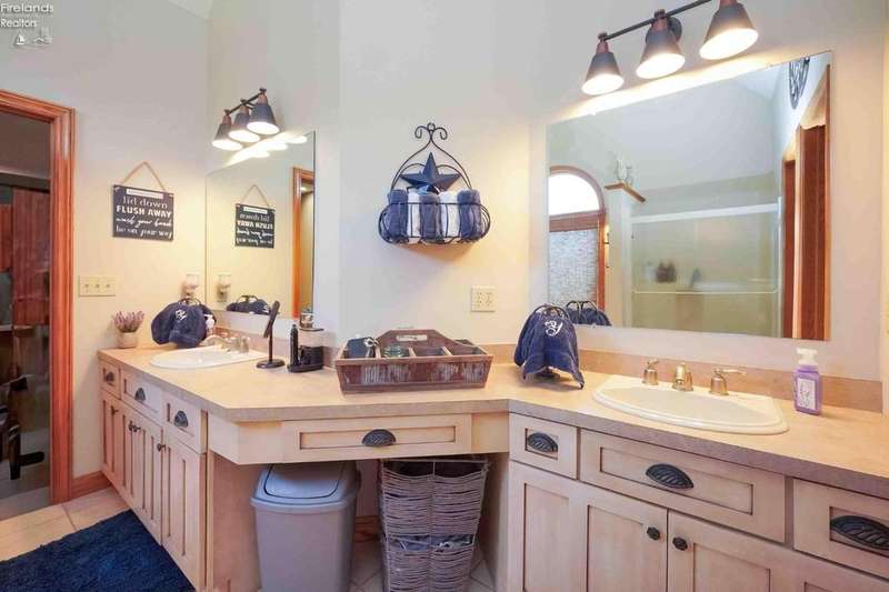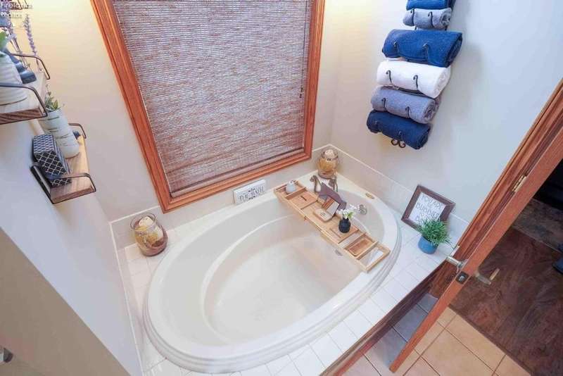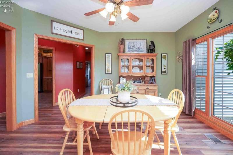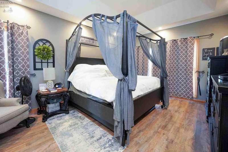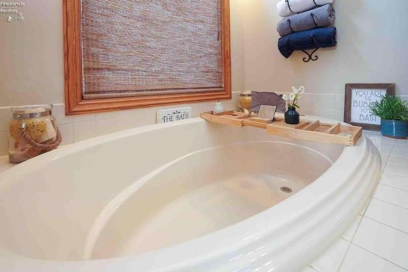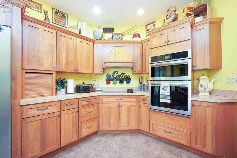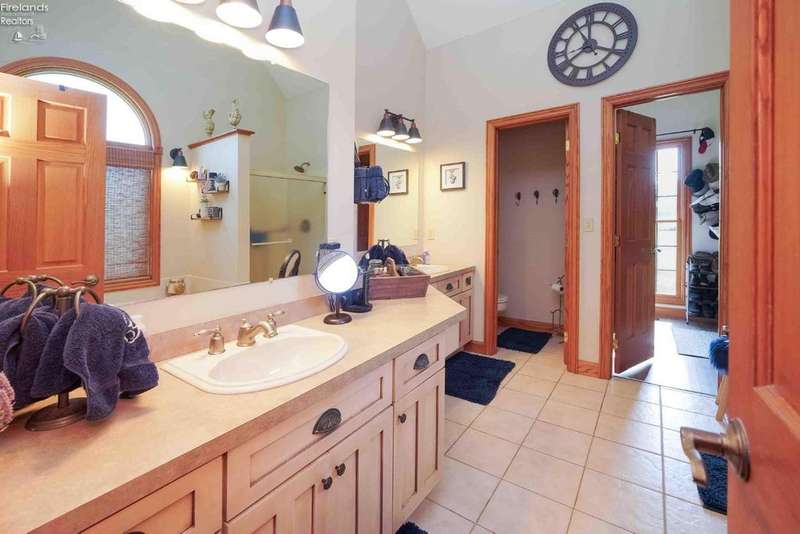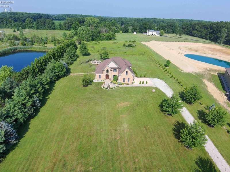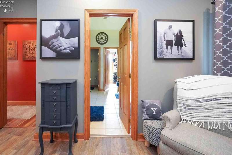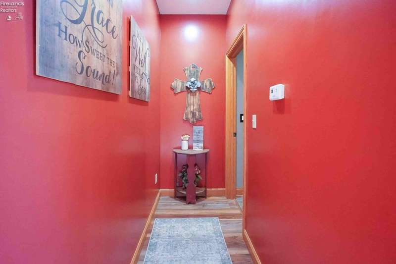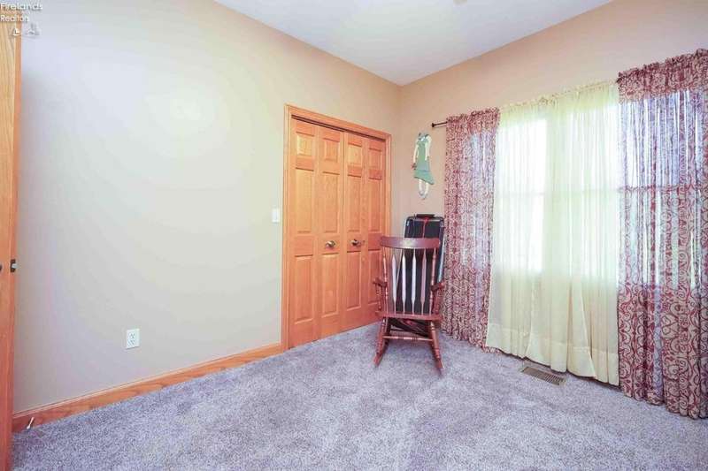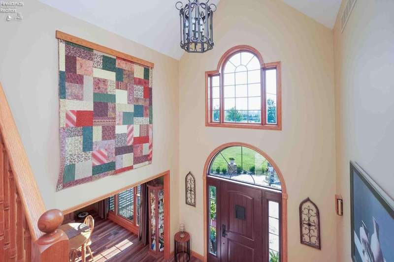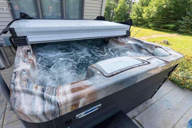 Escape to your own private retreat with this stunning country home, perfectly situated on 5 sprawling acres. Boasting 4 (possibly 5) bedrooms and 3 full bathrooms, this residence offers a harmonious blend of comfort, elegance, and rustic charm. From the moment you arrive, you'll be captivated by serene surroundings and a promise of a life in harmony with nature. The heart of this home is undoubtedly the main living area, where you'll find the luxurious master suite that features a tray ceiling with can lighting, double windows looking out onto the wooded backyard which add a touch of whimsy and warmth. The en suite bathroom is a true oasis, complete with relaxing soaking tub, a separate shower, double sinks, cathedral ceiling and a spacious walking in closet. The open floor plan seamlessly connects the living spaces all together. The sink in living room is a focal point, with its floor to ceiling windows offering breath-taking views. The stone gas fireplace provides a cozy ambience, while its decorative wooden beam and cathedral ceiling add architectural interest. Newly added to the vaulted ceiling in the Kitchen nook area is a tong and groove wooden planks ceiling which gives the area a cozy and inviting space and a touch of elegance. Completing the main level are a laundry room and additional full bath and a second bedroom. Venture outside and immerse yourself in the beauty of the surrounding landscape. Newly stamped and colored concrete walkways lead you to a new large patio that features a hot tub area, wet bar area and a sink in fire pit area with built in sitting. Patio area was recently constructed with nothing untouched. This area is an outdoor paradise for entertaining or just relaxing and watching the ever changing sky or nature. Additional features include scalloped siding on peak, six panel solid wood doors, all appliances remaining, 1st floor laundry, stunning lighting outside around home and 9ft basement ceilings. This home truly has it all!!!