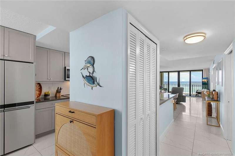 Annual Rental Available 12/15 Step into this modern, beautifully upgraded condo that offers a seamless blend of luxury and functionality. The open floor plan features 24x24 tile flooring throughout, with an inviting living area enhanced by LED lighting and a sleek fan light. The kitchen is a chef's dream, complete with stainless steel appliances, an air fryer stove, ice maker, grey shaker cabinets, and quartz countertops. The primary suite is a private retreat, boasting a walk-in closet, a lavish walk-in shower, and chic gold fixtures paired with lighted anti fog mirrors for a touch of elegance. The condo also features an updated guest bath that’s perfect for entertaining visitors. Additional highlights include impact windows and doors, new shutters on the west side, full-size laundry, brand new AC & 2021 HWH. The expansive balcony offers plenty of space to relax and enjoy outdoor living. Amenities include a social room, lobby, exercise room & pool.