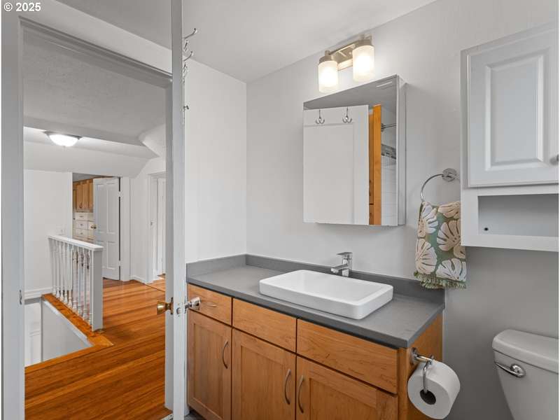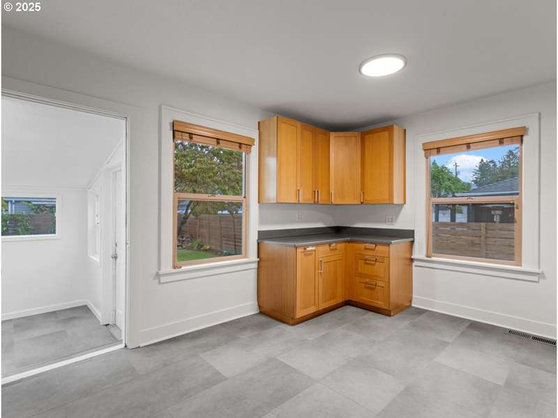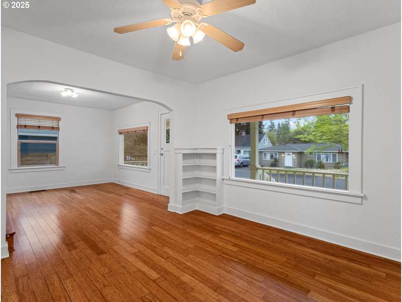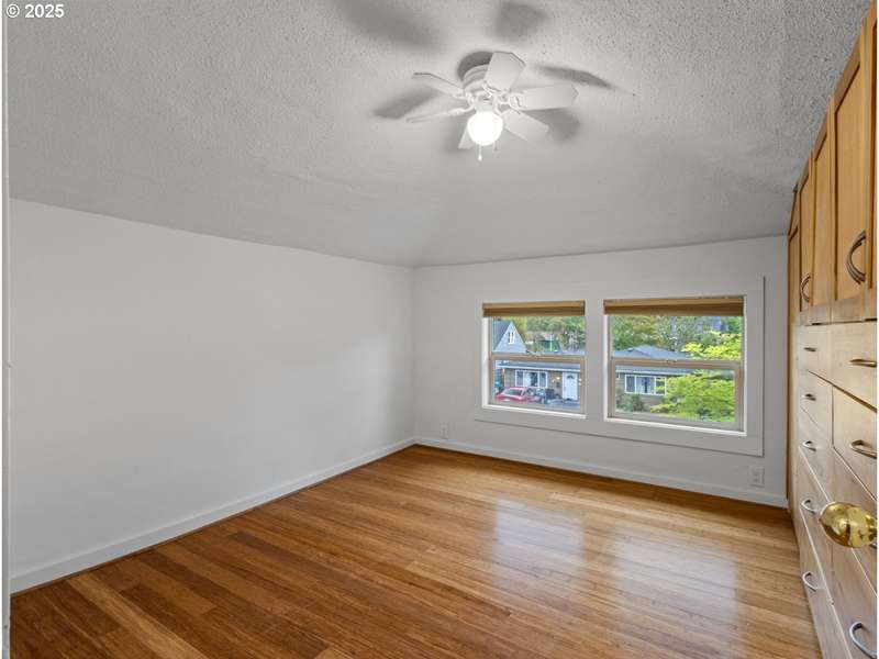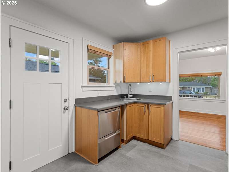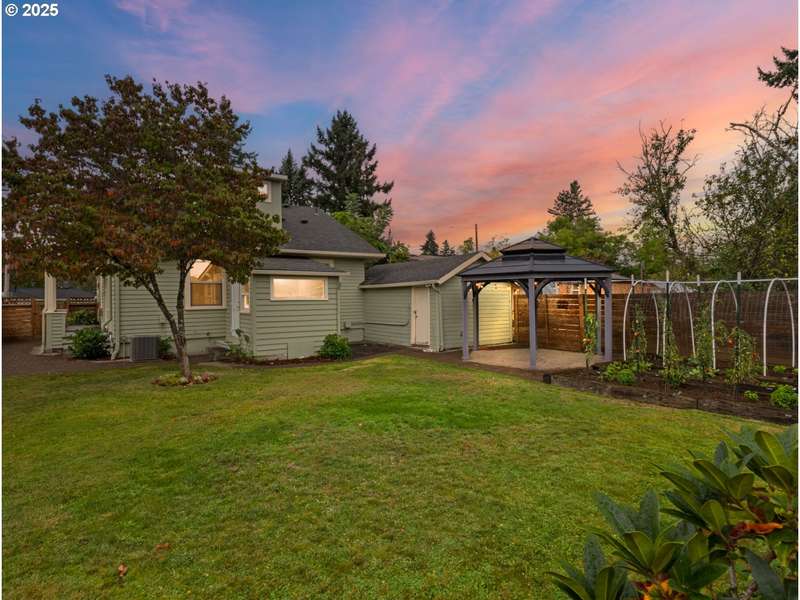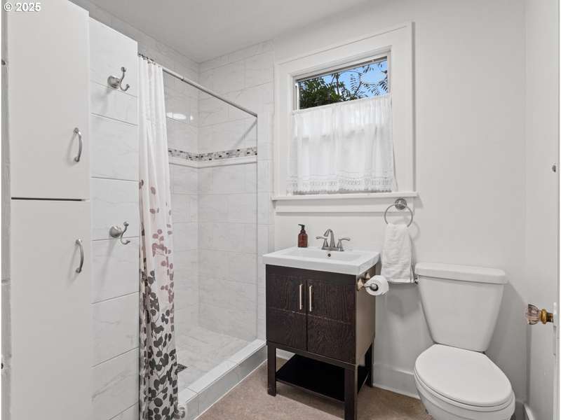 Welcome to this beautifully maintained 1925 Craftsman in the heart of SE Portland. With 4 bedrooms, 2 full baths, and over 2,000 sq. ft. of space, this home pairs timeless character with thoughtful updates for modern living. A classic covered front porch sets the stage for morning coffee or evening relaxation. Inside, the spacious living room features hardwood floors, fresh paint, and large front windows that flood the home with natural light. The main level includes an updated kitchen with natural wood cabinetry, quartz countertops, stainless steel appliances, and new flooring, with plenty of storage and space for a cozy breakfast nook. A primary bedroom and full bath on this level add comfort and flexibility. The upper level is neatly divided between three bedrooms and a second full bathroom. The lower level is partially finished and provides an abundance of flex space and storage options. Step outside to enjoy the covered back patio and fully fenced yard, complete with flower beds and a vegetable garden. The detached garage with electricity offers excellent storage or workshop potential, and a dedicated electrical hookup is ready for your future hot tub. And there’s no shortage of parking with the extra deep driveway. Notable upgrades include double-pane windows, PEX water piping, a 200-amp panel, earthquake bolting, and a radon mitigation unit. For year-round comfort, the home is equipped with a high-efficiency natural gas furnace and central A/C. This move-in ready Craftsman is the perfect blend of historic charm and modern convenience—don’t miss the chance to make it yours.