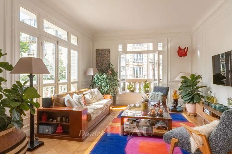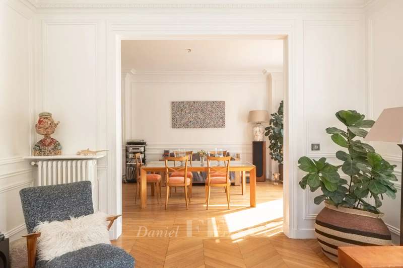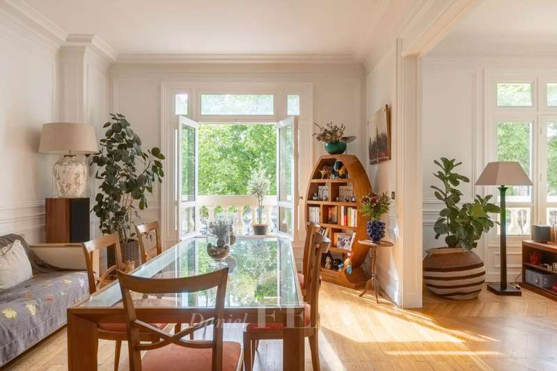 This magnificent corner apartment is on the 2nd floor of a fine 1930s building with a caretaker and a lift located opposite Ecole Militaire and a stone's throw from the Champ-de-Mars. Bathed in sunshine and enjoying open views, it includes an entrance hall, a double living/reception room and dining room, a kitchen with dining facilties, three suites each with a bath or shower room and fitted storage space, a 4th bedroom, a utility room, and two separate wc. With a cellar. The apartment features three-metre high ceilings and benefits from an excellent floor plan. In a convenient location near the shops, the schools and the transport networks.