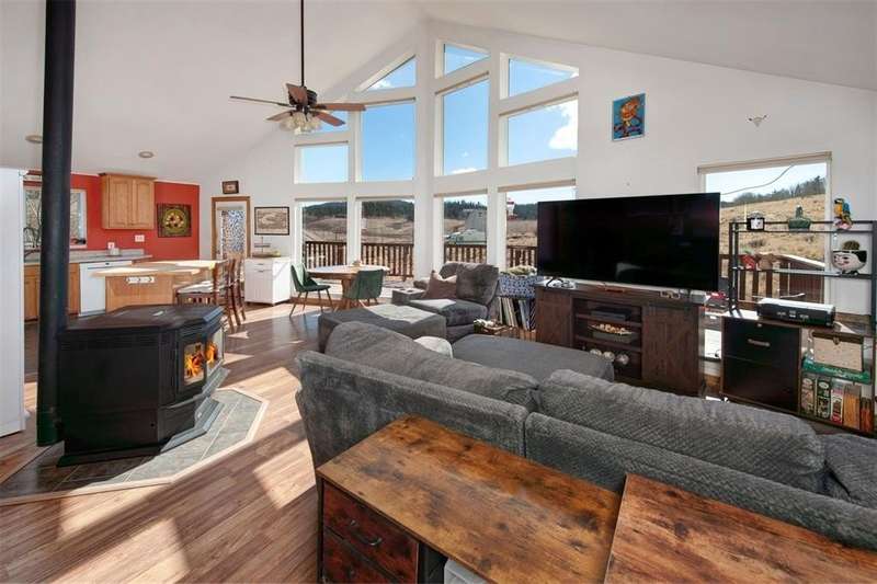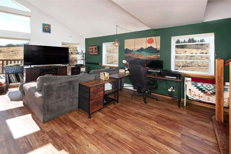Lives like a three-bedroom! Now offered with the adjoining 1.32-acre lot—bringing the total to 2.68 acres—and a recent $20,000 price reduction, this property is an exceptional value. This unique one-bedroom home with a den and loft offers generous bonus space, providing plenty of room for everyone to spread out and relax. Soaring ceilings and a spacious open-concept living area create an airy, welcoming feel, while large windows frame mountain views. The home's south-facing orientation brings in abundant natural light all day long. Step outside to enjoy sunny days and evening barbecues on the expansive deck, all set against the backdrop of the High Rockies. Located on paved roads for easy year-round access, this home also features a fenced dog run and a large shed equipped with electricity. With a voluntary HOA fee of just $45 per year, you’ll have access to a variety of community amenities, including pasture golf, disc golf, a sledding and ski hill, a community center, burn pit, RV storage, and off-road trails. Low utilities and property taxes make this home exceptionally affordable to maintain. Priced to sell—schedule your showing today!